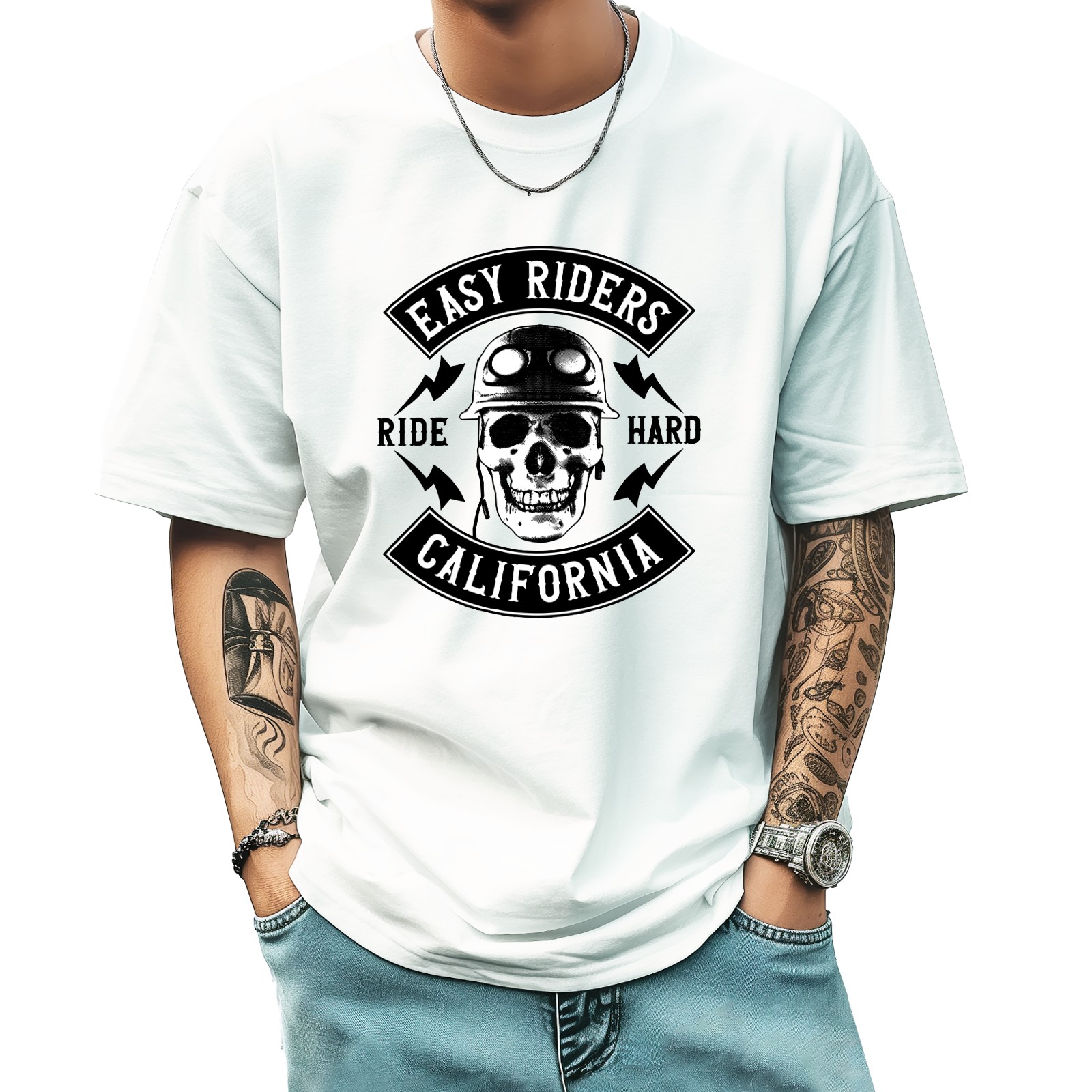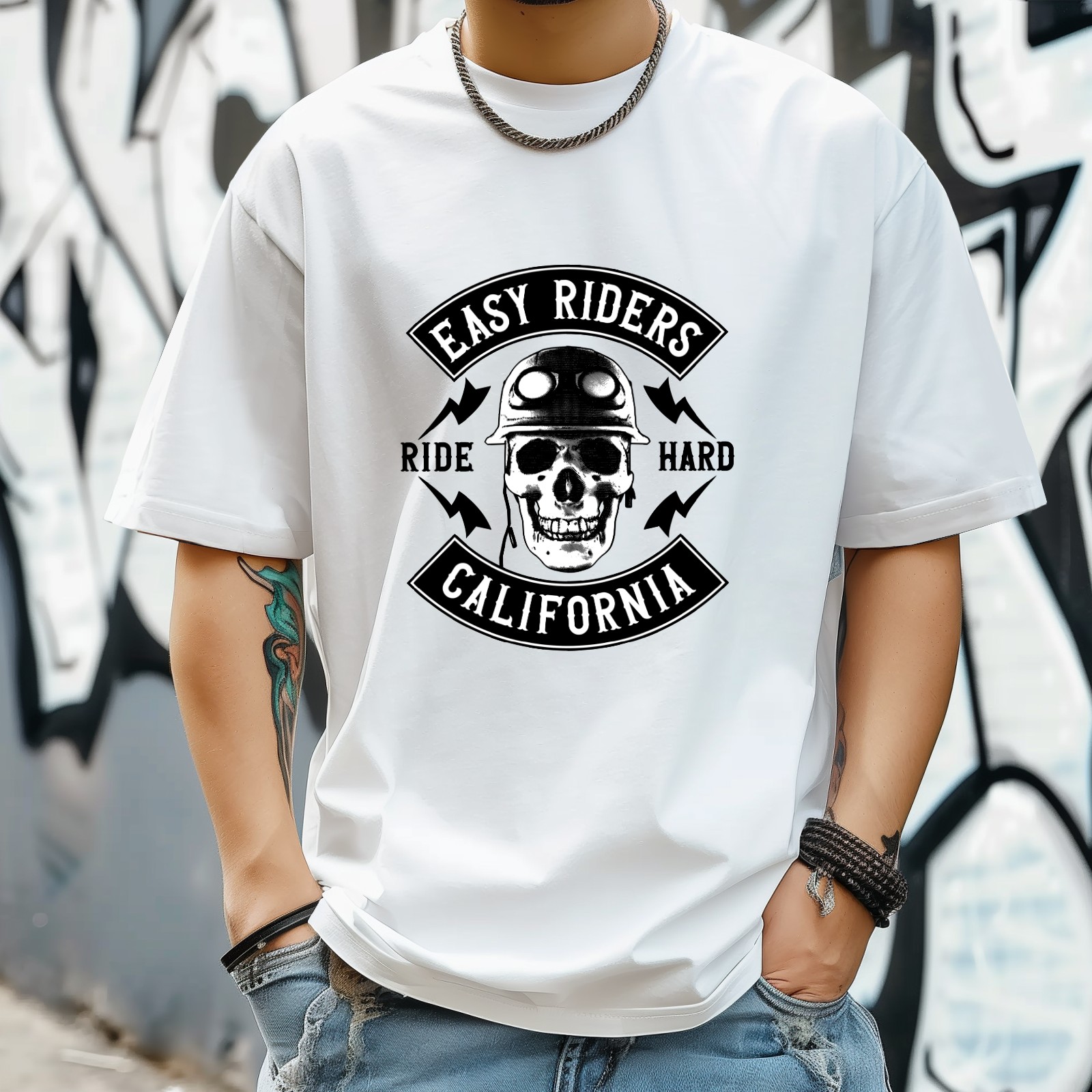 Easy Riders T-Shirt for Man Tops Short Sleeves Shirt Crew Neck Shirt XS
