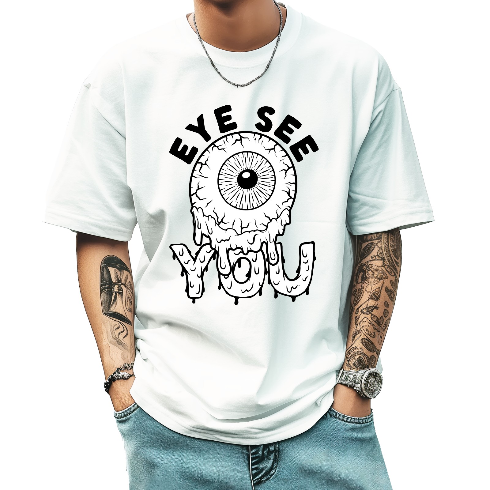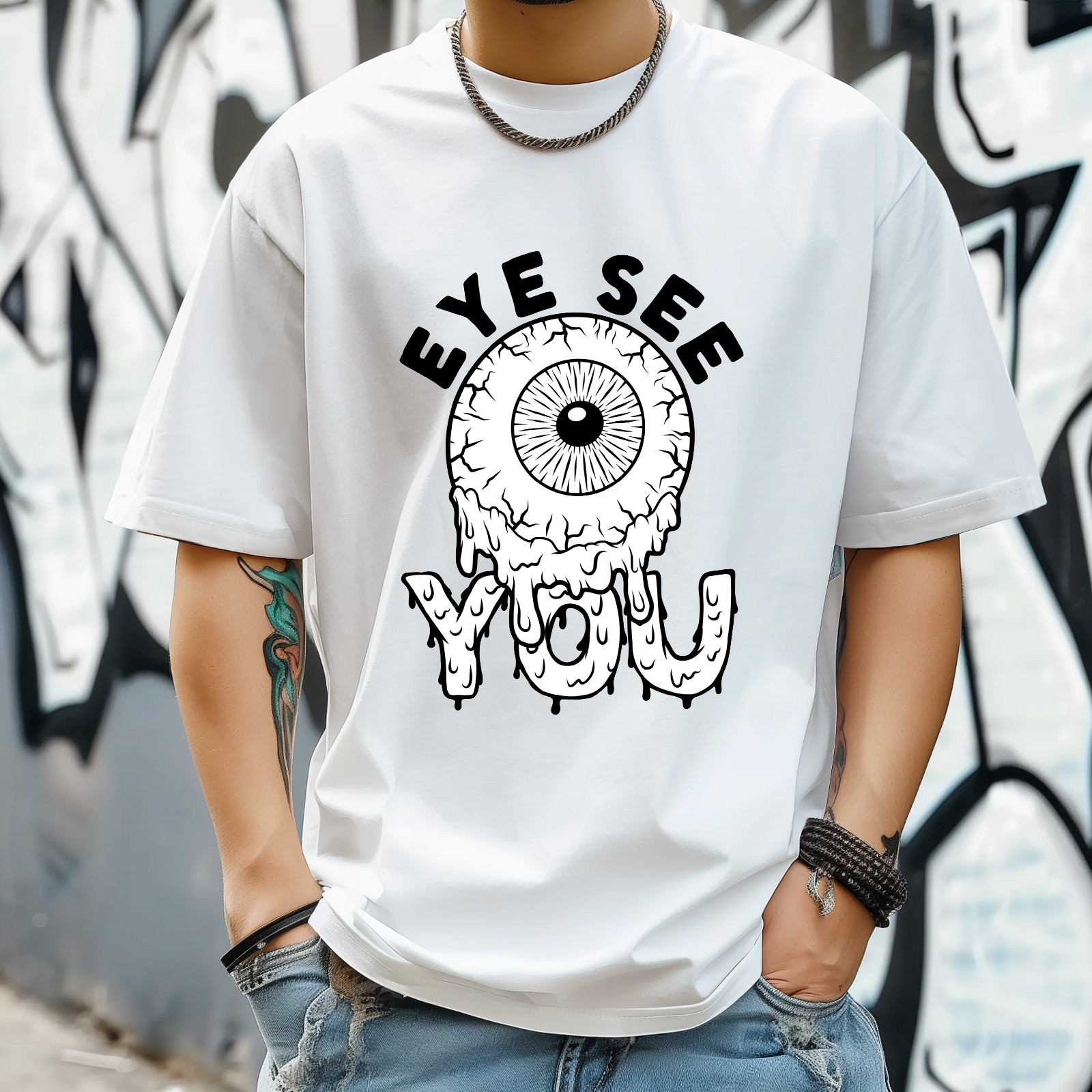 Eye See T-Shirt for Man Tops Short Sleeves Shirt Crew Neck Shirt XS