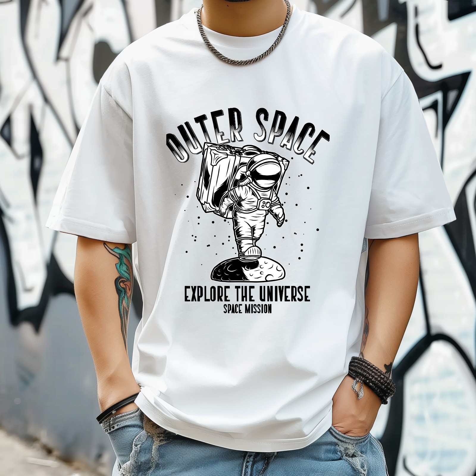 Deep Space T-Shirt for Man Tops Short Sleeves Shirt Crew Neck Shirt XS