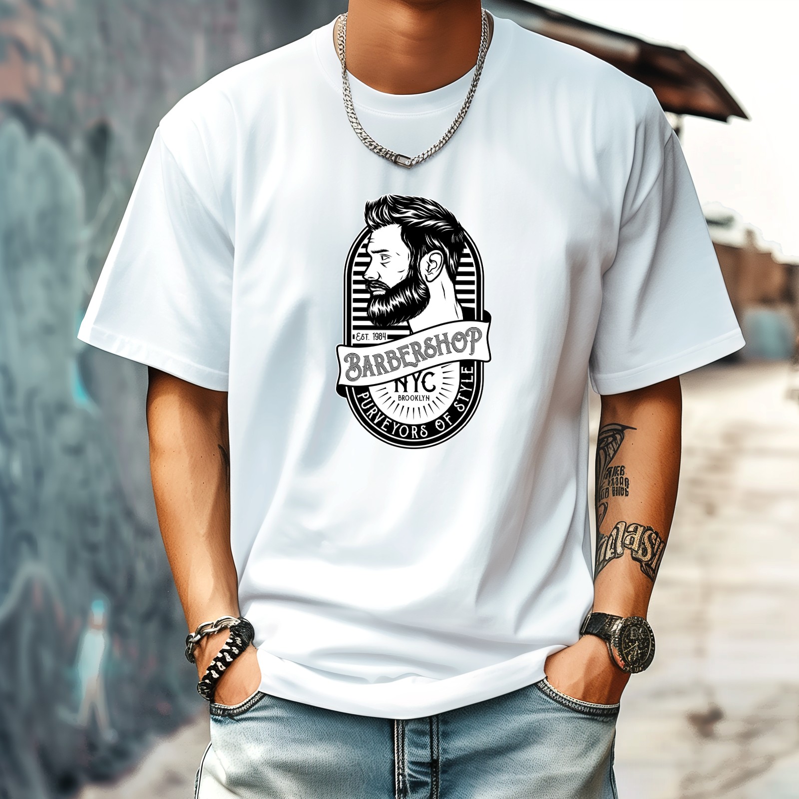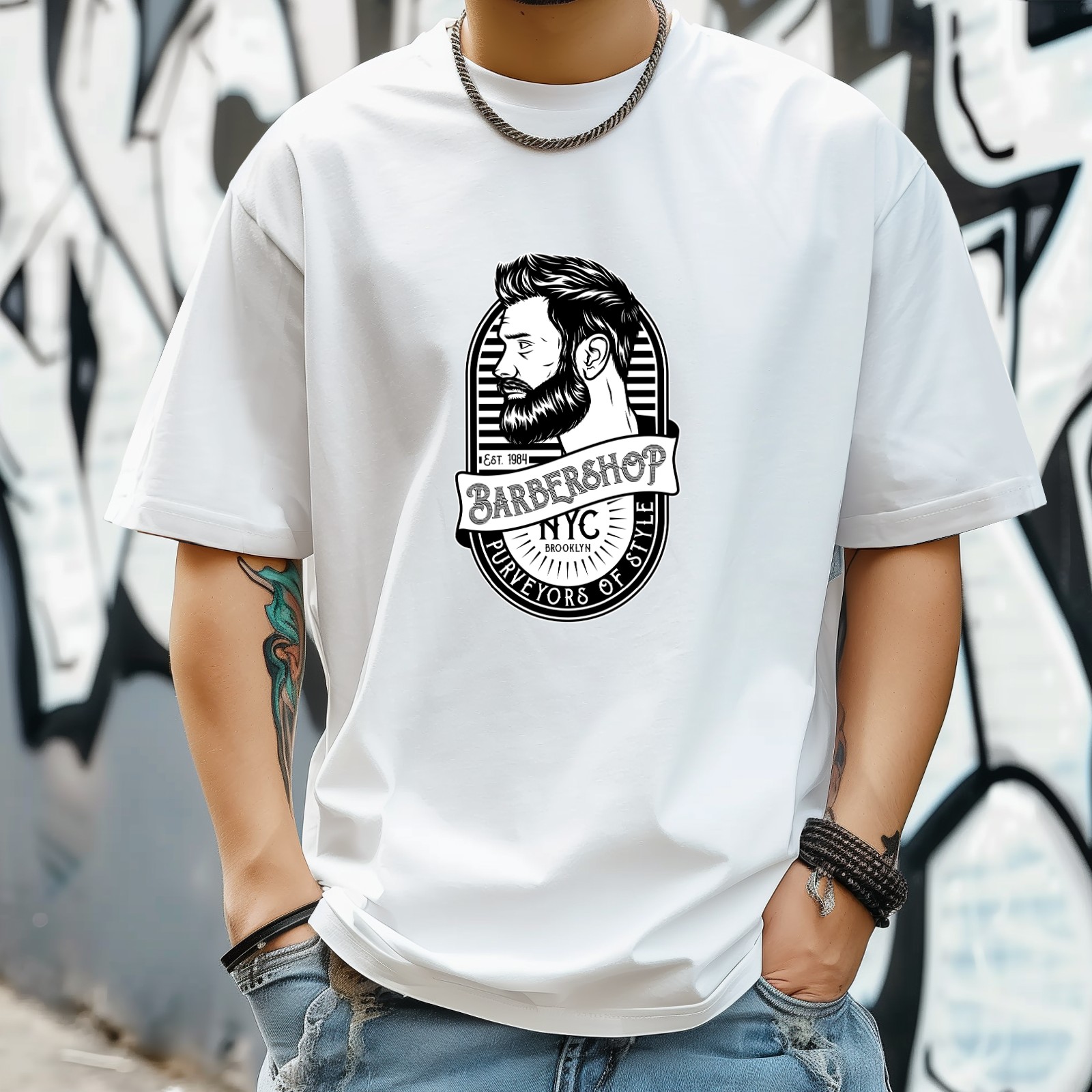 Barber Shop T-Shirt for Man Tops Short Sleeves Shirt Crew Neck Shirt XS