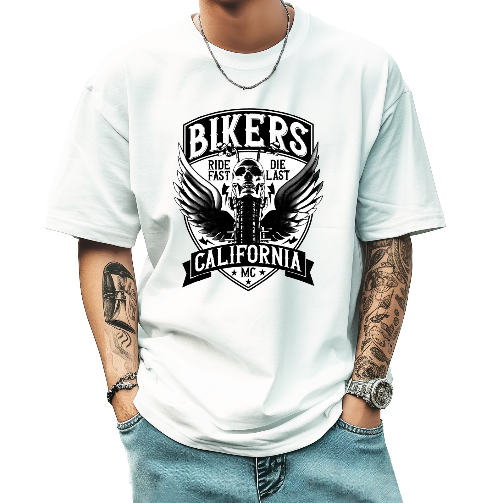 Bikers T-Shirt for Man Tops Short Sleeves Shirt Crew Neck Shirt XS