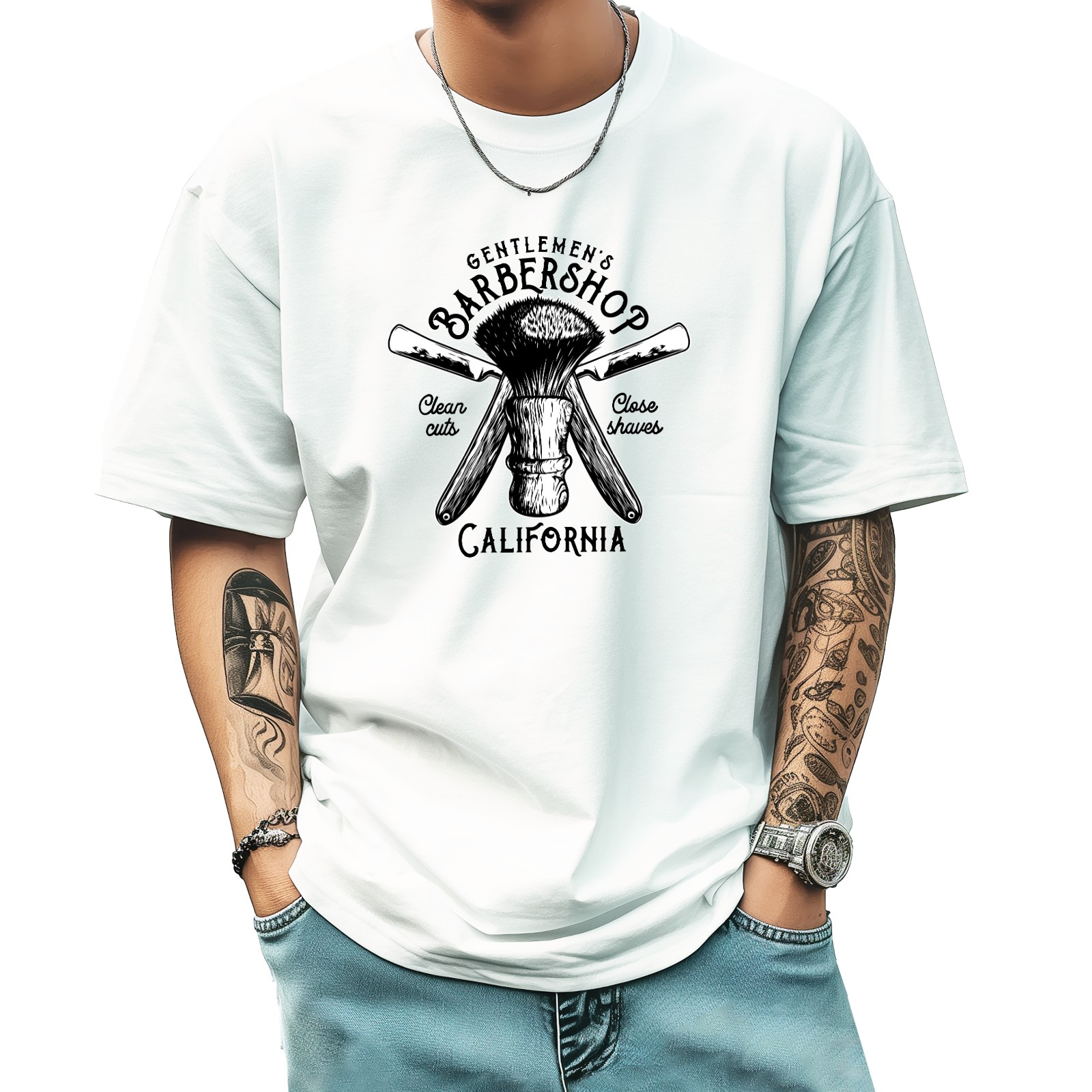 Barber California (1) T-Shirt for Man Tops Short Sleeves Shirt Crew Neck Shirt XS