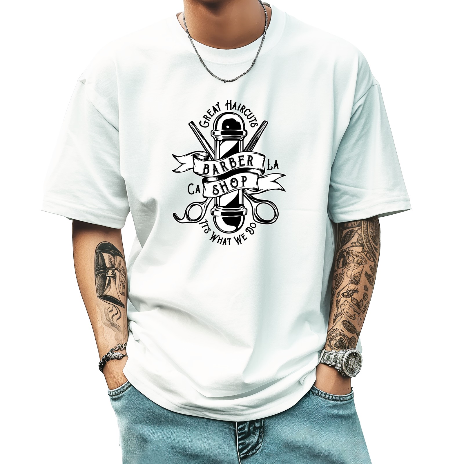 Barber California (2) T-Shirt for Man Tops Short Sleeves Shirt Crew Neck Shirt XS