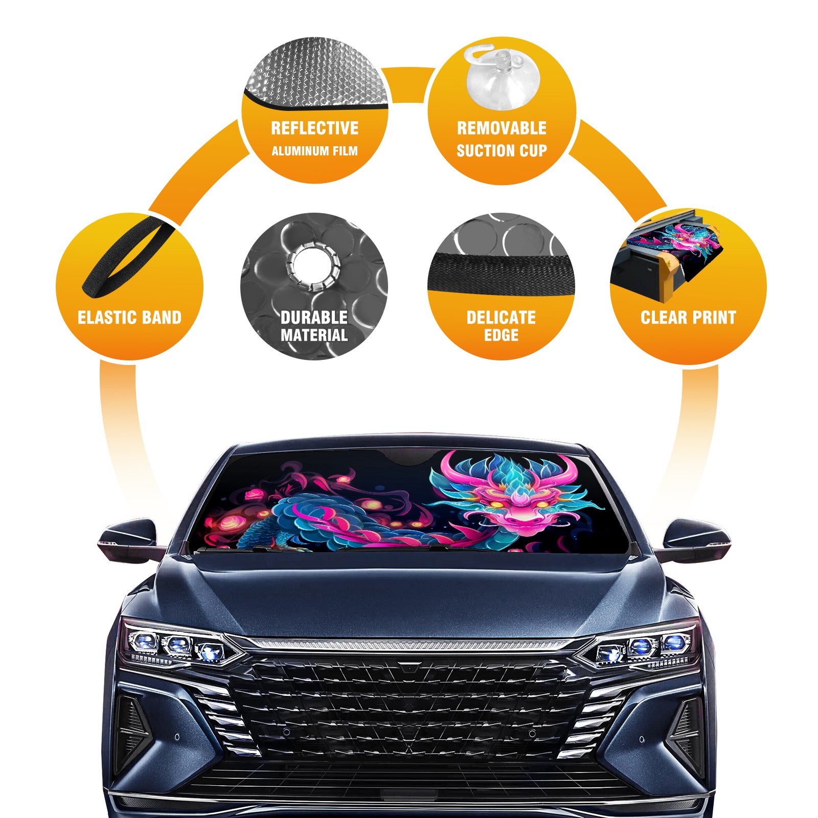 Car Windshield Sun Shade for Front Window Chinese Dragon (55) Foldable Vehicle Windshield Car Sun Visor Covers Automotive Window Protector Car Privacy Sun Blocker