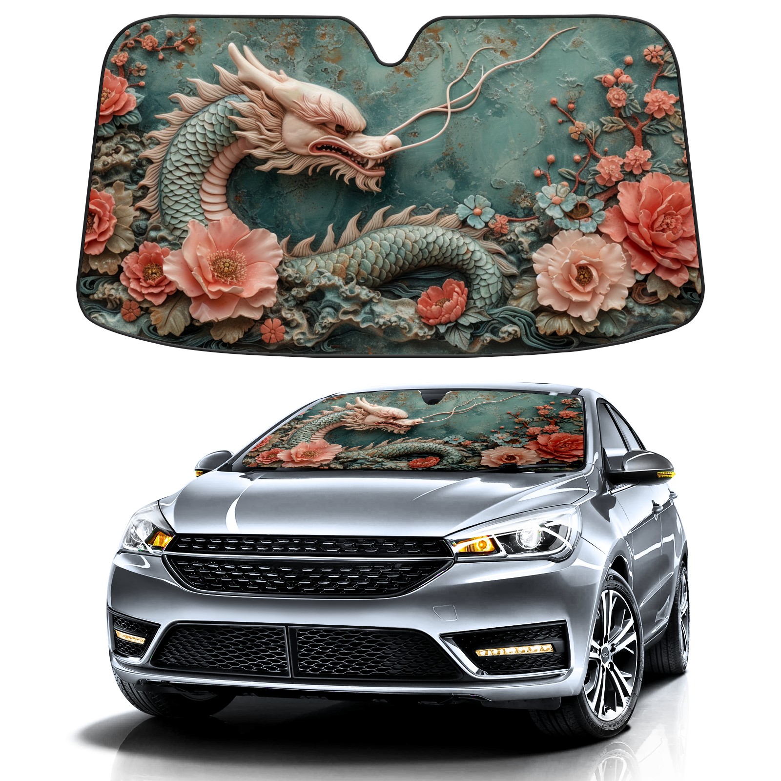 Car Windshield Sun Shade for Front Window Chinese Dragon (58) Foldable Vehicle Windshield Car Sun Visor Covers Automotive Window Protector Car Privacy Sun Blocker