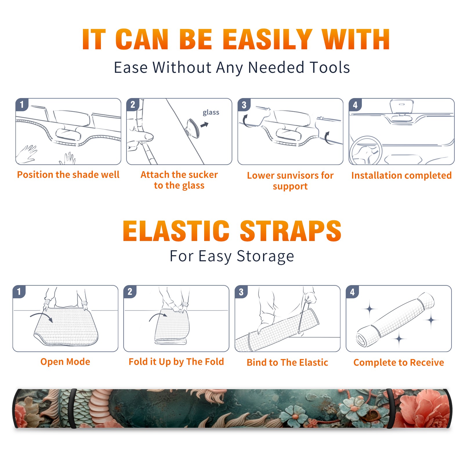 • <b>ZXIVGOQFR Foldable Premium Car Windshield Sunshade is your great solution to reduce your car’s interior temperature dramatically! This is definitely a must-have item for your summer travel! </b> <br> ●<b>Size: 63"L x 33.5"W </b> <br></b> ●<b>Blocking Uv Rays & Heat Insulation<br></b> Our vehicle sunshade provides effective UV, sun, and summer heat protection .Maintains dashboards by preventing fading and cracking <br> ●<b>Easy-To-Store Folding Design Makes Storage Convenient <br></b> ZXIVGOQFR car sunshades come with removable suction cups and elastic bands that you can install easily and quickly, and the removable suction cups will not leave any marks on your windows when removed. Within seconds, windshield visor can be installed and removed. When not in use,the front windshield can be easily and effectively placed on the door pocket or the dashboard, which is beautiful and does not take up space in the car.<br> <br> <b>PUT UP A 'PROTECTIVE UMBRELLA' FOR YOUR BELOVED CAR!</b>