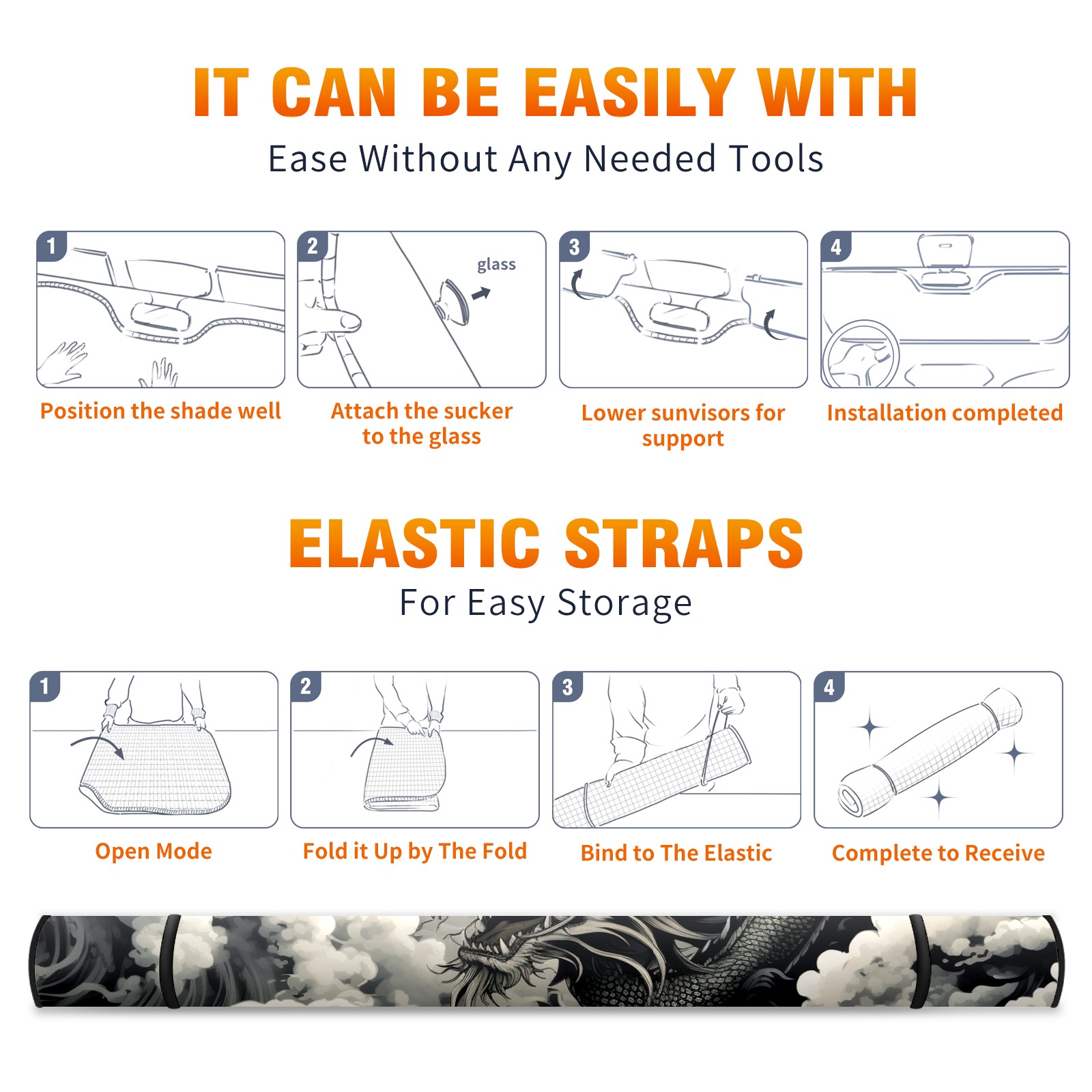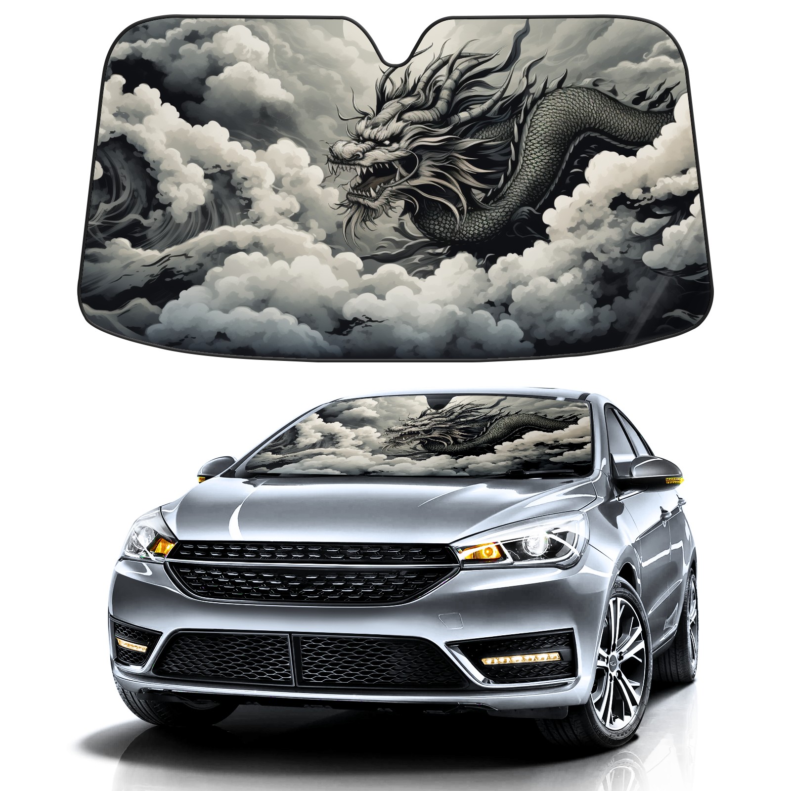 Car Windshield Sun Shade for Front Window Chinese Dragon (69) Foldable Vehicle Windshield Car Sun Visor Covers Automotive Window Protector Car Privacy Sun Blocker