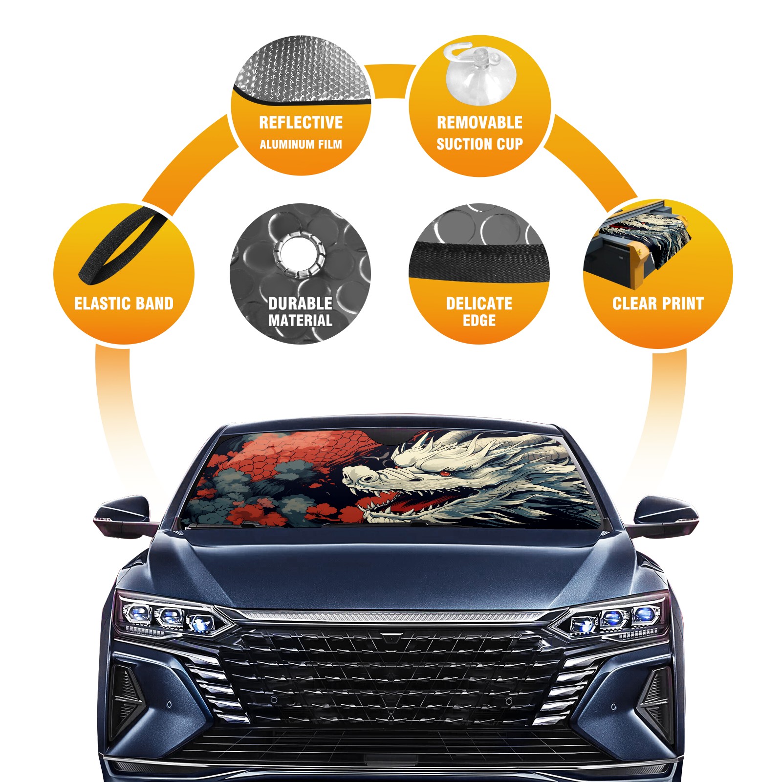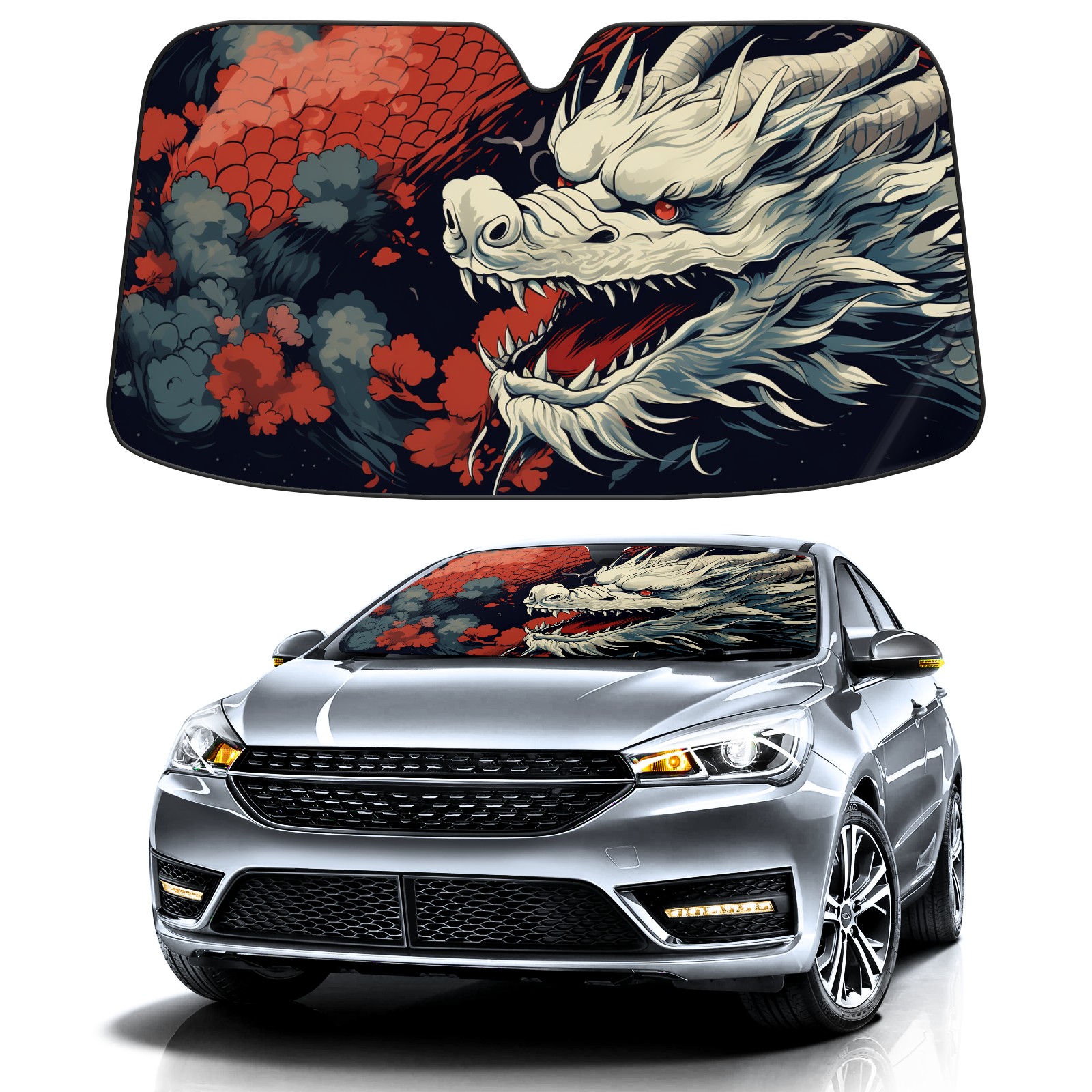 Car Windshield Sun Shade for Front Window Chinese Dragon (25) Foldable Vehicle Windshield Car Sun Visor Covers Automotive Window Protector Car Privacy Sun Blocker