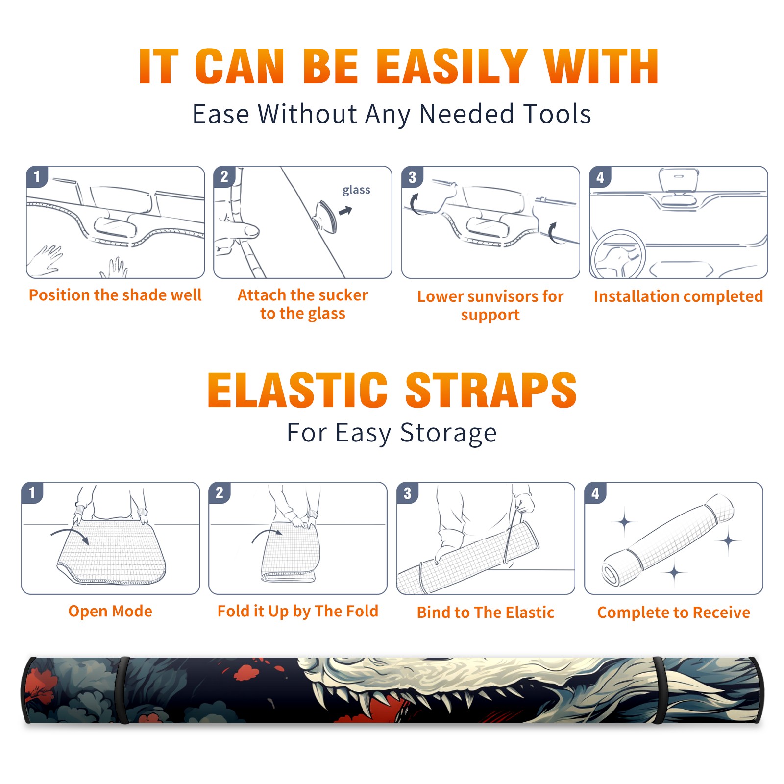 • <b>ZXIVGOQFR Foldable Premium Car Windshield Sunshade is your great solution to reduce your car’s interior temperature dramatically! This is definitely a must-have item for your summer travel! </b> <br> ●<b>Size: 63"L x 33.5"W </b> <br></b> ●<b>Blocking Uv Rays & Heat Insulation<br></b> Our vehicle sunshade provides effective UV, sun, and summer heat protection .Maintains dashboards by preventing fading and cracking <br> ●<b>Easy-To-Store Folding Design Makes Storage Convenient <br></b> ZXIVGOQFR car sunshades come with removable suction cups and elastic bands that you can install easily and quickly, and the removable suction cups will not leave any marks on your windows when removed. Within seconds, windshield visor can be installed and removed. When not in use,the front windshield can be easily and effectively placed on the door pocket or the dashboard, which is beautiful and does not take up space in the car.<br> <br> <b>PUT UP A 'PROTECTIVE UMBRELLA' FOR YOUR BELOVED CAR!</b>