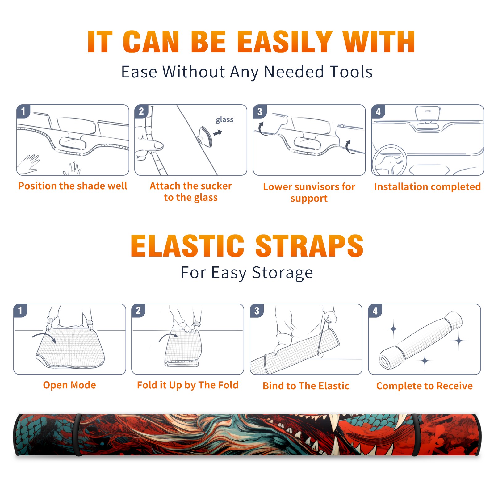 • <b>ZXIVGOQFR Foldable Premium Car Windshield Sunshade is your great solution to reduce your car’s interior temperature dramatically! This is definitely a must-have item for your summer travel! </b> <br> ●<b>Size: 63"L x 33.5"W </b> <br></b> ●<b>Blocking Uv Rays & Heat Insulation<br></b> Our vehicle sunshade provides effective UV, sun, and summer heat protection .Maintains dashboards by preventing fading and cracking <br> ●<b>Easy-To-Store Folding Design Makes Storage Convenient <br></b> ZXIVGOQFR car sunshades come with removable suction cups and elastic bands that you can install easily and quickly, and the removable suction cups will not leave any marks on your windows when removed. Within seconds, windshield visor can be installed and removed. When not in use,the front windshield can be easily and effectively placed on the door pocket or the dashboard, which is beautiful and does not take up space in the car.<br> <br> <b>PUT UP A 'PROTECTIVE UMBRELLA' FOR YOUR BELOVED CAR!</b>