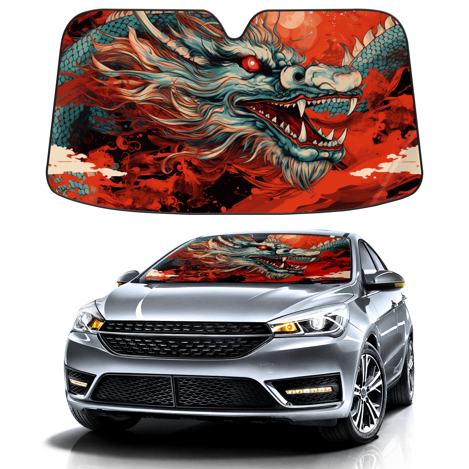 Car Windshield Sun Shade for Front Window Chinese Dragon (23) Foldable Vehicle Windshield Car Sun Visor Covers Automotive Window Protector Car Privacy Sun Blocker