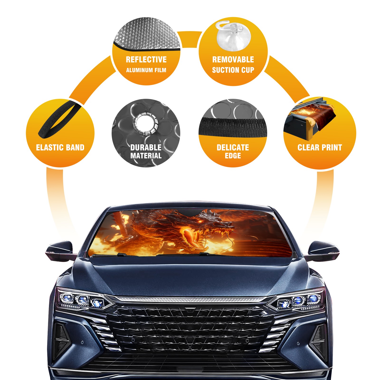 Car Windshield Sun Shade for Front Window Chinese Dragon (38) Foldable Vehicle Windshield Car Sun Visor Covers Automotive Window Protector Car Privacy Sun Blocker