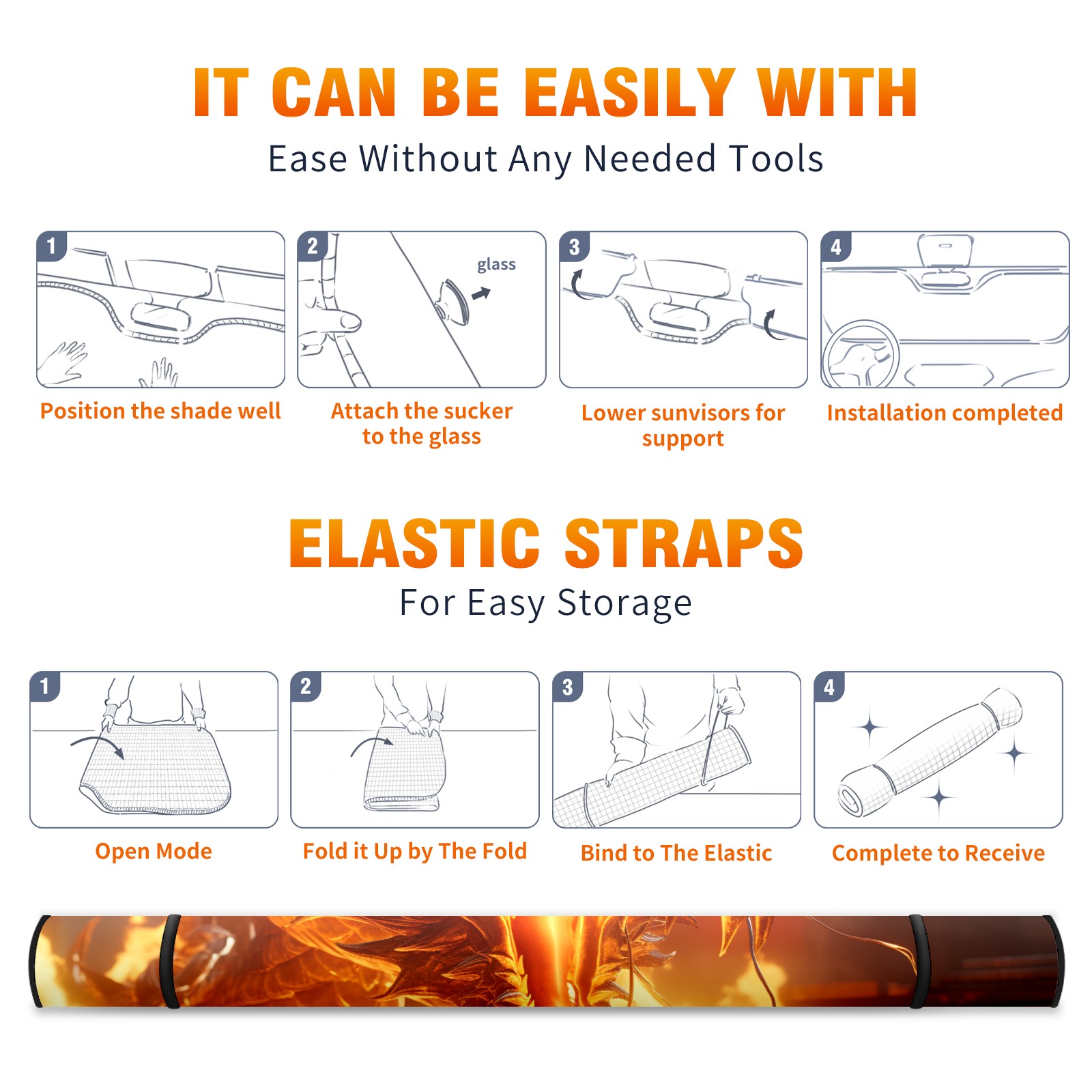• <b>ZXIVGOQFR Foldable Premium Car Windshield Sunshade is your great solution to reduce your car’s interior temperature dramatically! This is definitely a must-have item for your summer travel! </b> <br> ●<b>Size: 63"L x 33.5"W </b> <br></b> ●<b>Blocking Uv Rays & Heat Insulation<br></b> Our vehicle sunshade provides effective UV, sun, and summer heat protection .Maintains dashboards by preventing fading and cracking <br> ●<b>Easy-To-Store Folding Design Makes Storage Convenient <br></b> ZXIVGOQFR car sunshades come with removable suction cups and elastic bands that you can install easily and quickly, and the removable suction cups will not leave any marks on your windows when removed. Within seconds, windshield visor can be installed and removed. When not in use,the front windshield can be easily and effectively placed on the door pocket or the dashboard, which is beautiful and does not take up space in the car.<br> <br> <b>PUT UP A 'PROTECTIVE UMBRELLA' FOR YOUR BELOVED CAR!</b>