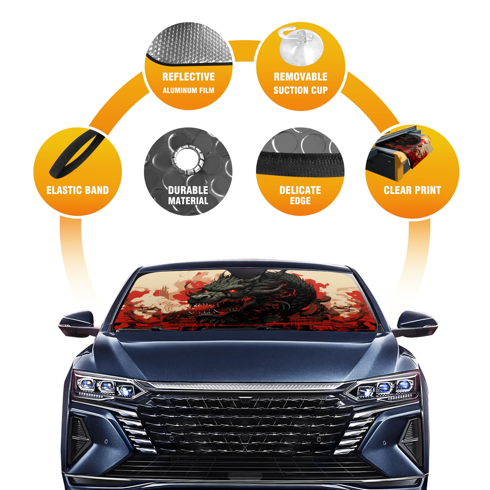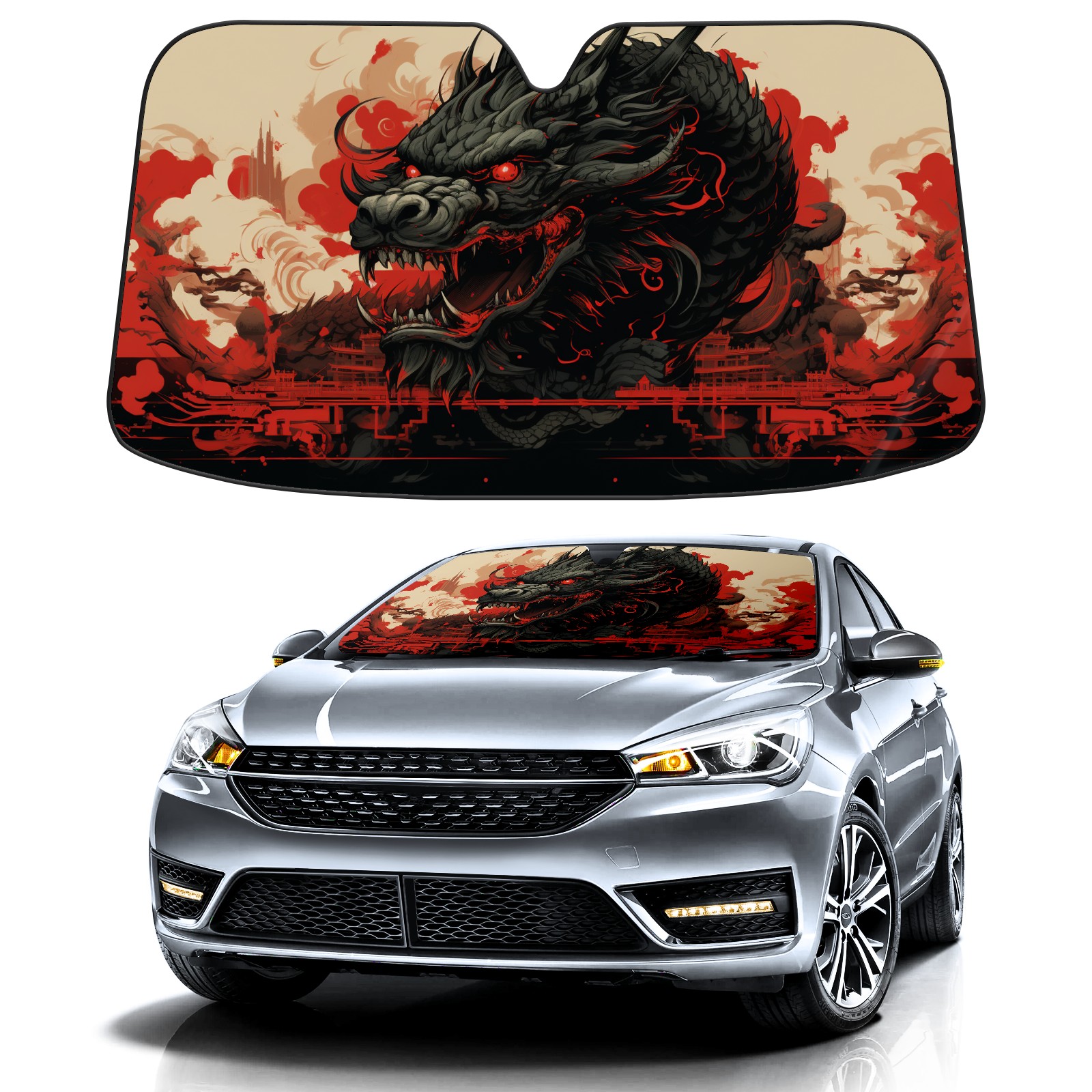 Car Windshield Sun Shade for Front Window Chinese Dragon (32) Foldable Vehicle Windshield Car Sun Visor Covers Automotive Window Protector Car Privacy Sun Blocker