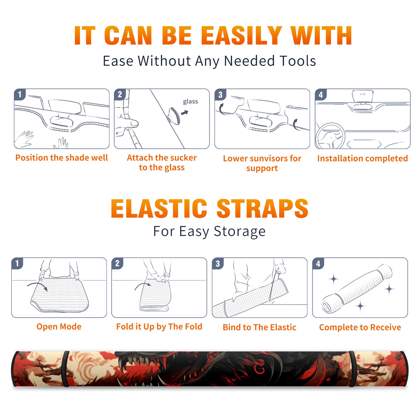 • <b>ZXIVGOQFR Foldable Premium Car Windshield Sunshade is your great solution to reduce your car’s interior temperature dramatically! This is definitely a must-have item for your summer travel! </b> <br> ●<b>Size: 63"L x 33.5"W </b> <br></b> ●<b>Blocking Uv Rays & Heat Insulation<br></b> Our vehicle sunshade provides effective UV, sun, and summer heat protection .Maintains dashboards by preventing fading and cracking <br> ●<b>Easy-To-Store Folding Design Makes Storage Convenient <br></b> ZXIVGOQFR car sunshades come with removable suction cups and elastic bands that you can install easily and quickly, and the removable suction cups will not leave any marks on your windows when removed. Within seconds, windshield visor can be installed and removed. When not in use,the front windshield can be easily and effectively placed on the door pocket or the dashboard, which is beautiful and does not take up space in the car.<br> <br> <b>PUT UP A 'PROTECTIVE UMBRELLA' FOR YOUR BELOVED CAR!</b>