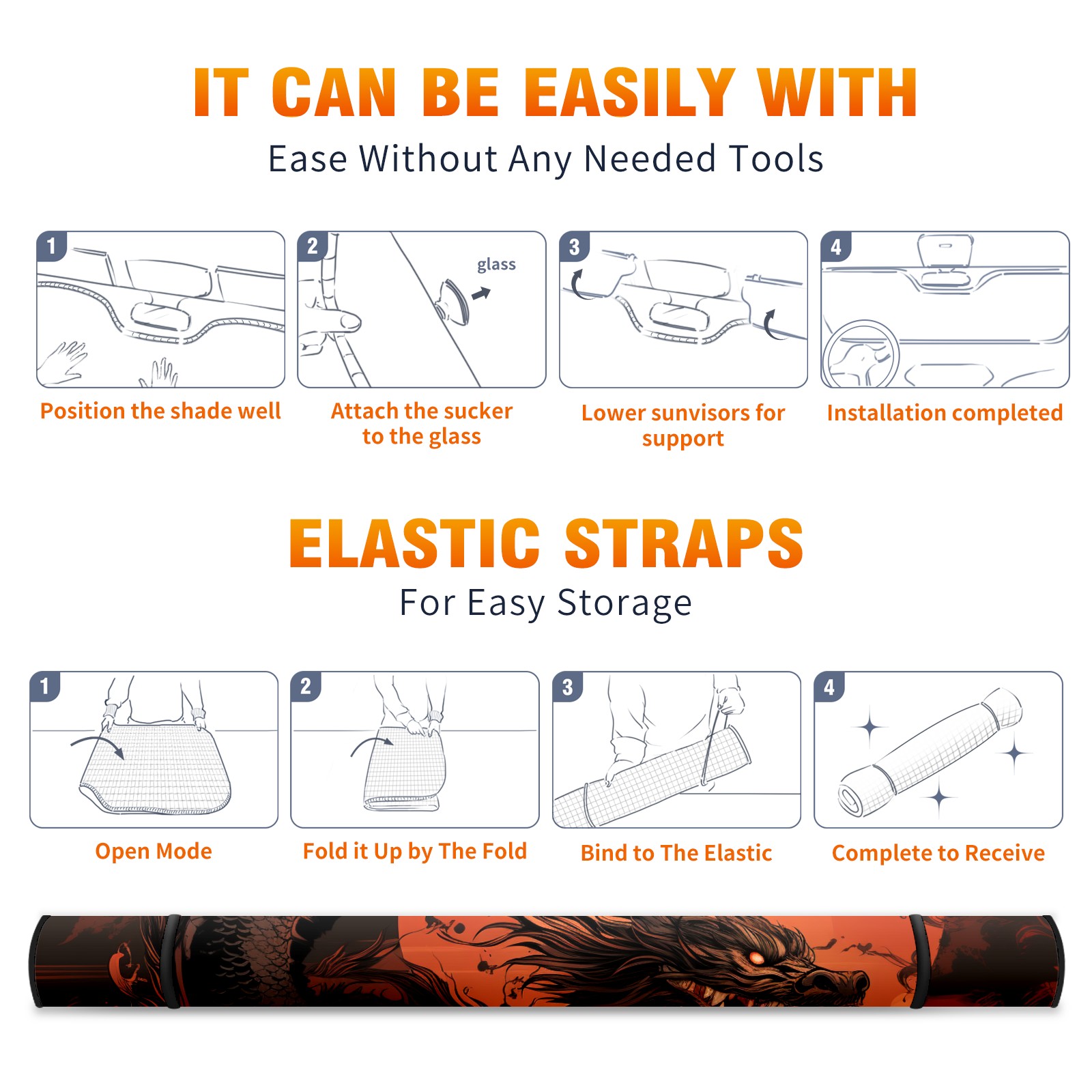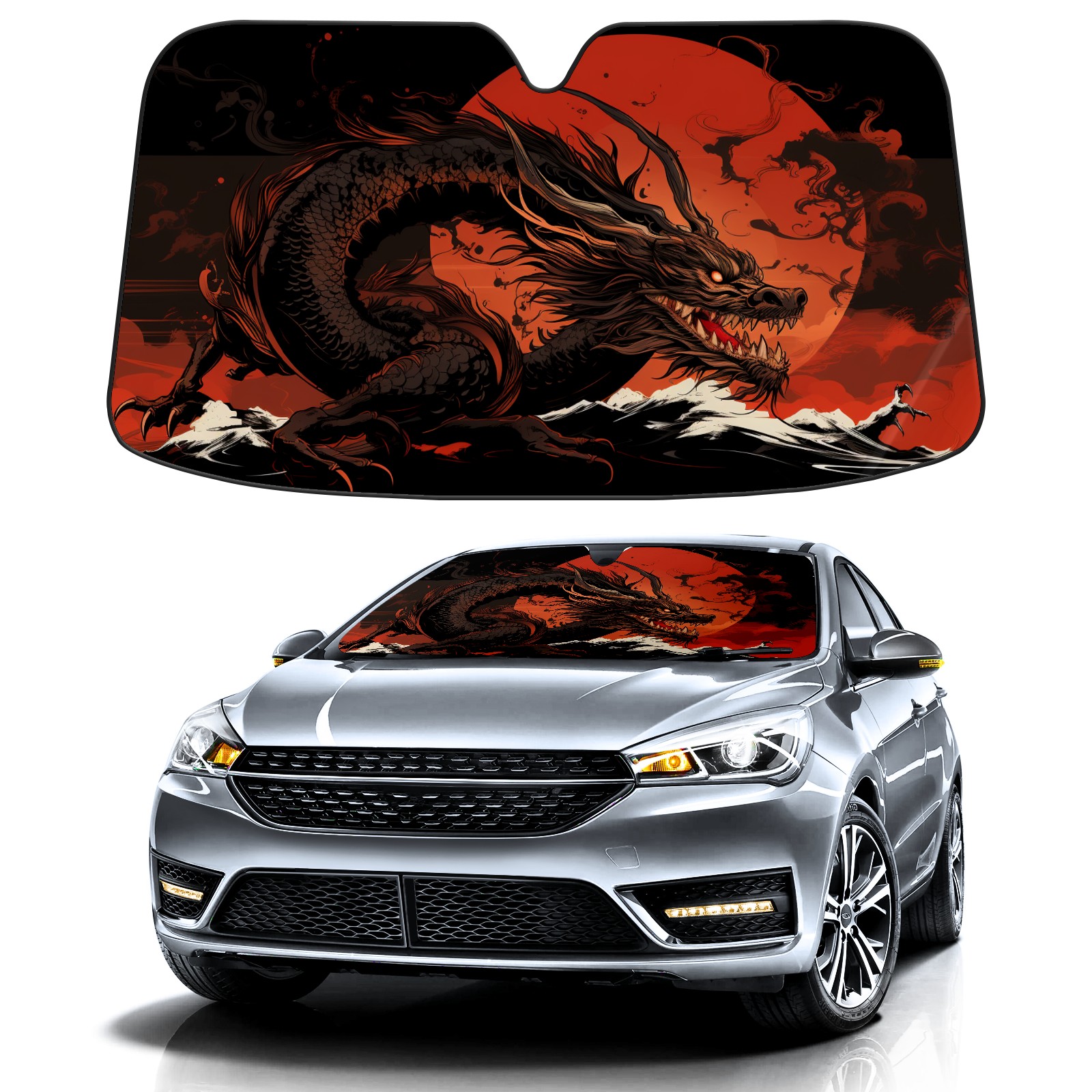 Car Windshield Sun Shade for Front Window Chinese Dragon (31) Foldable Vehicle Windshield Car Sun Visor Covers Automotive Window Protector Car Privacy Sun Blocker