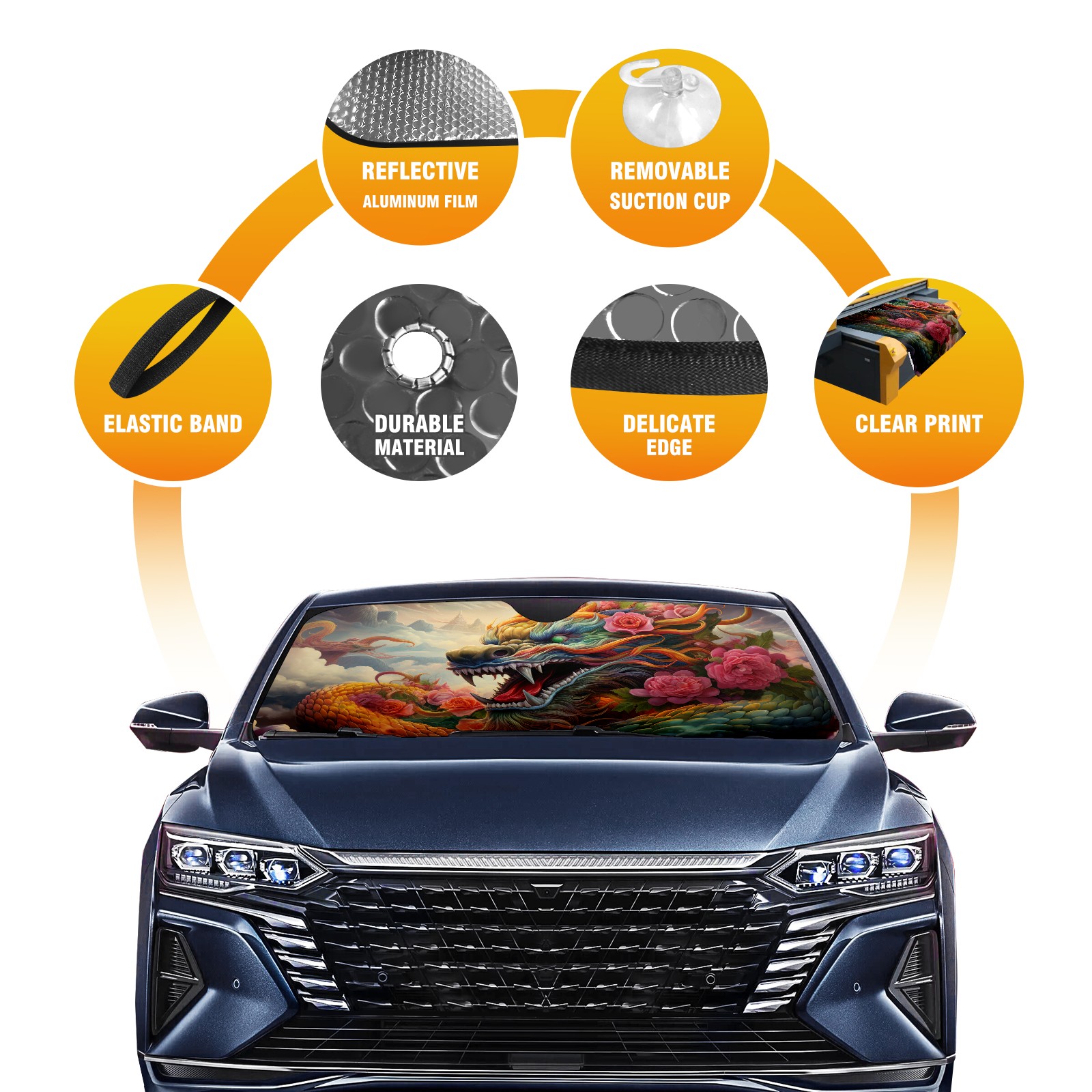Car Windshield Sun Shade for Front Window Chinese Dragon (77) Foldable Vehicle Windshield Car Sun Visor Covers Automotive Window Protector Car Privacy Sun Blocker