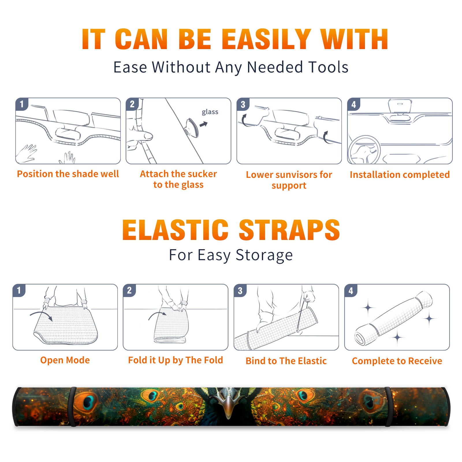 Car Windshield Sun Shade for Front Window Peacock (79) Foldable Vehicle Windshield Car Sun Visor Covers Automotive Window Protector Car Privacy Sun Blocker