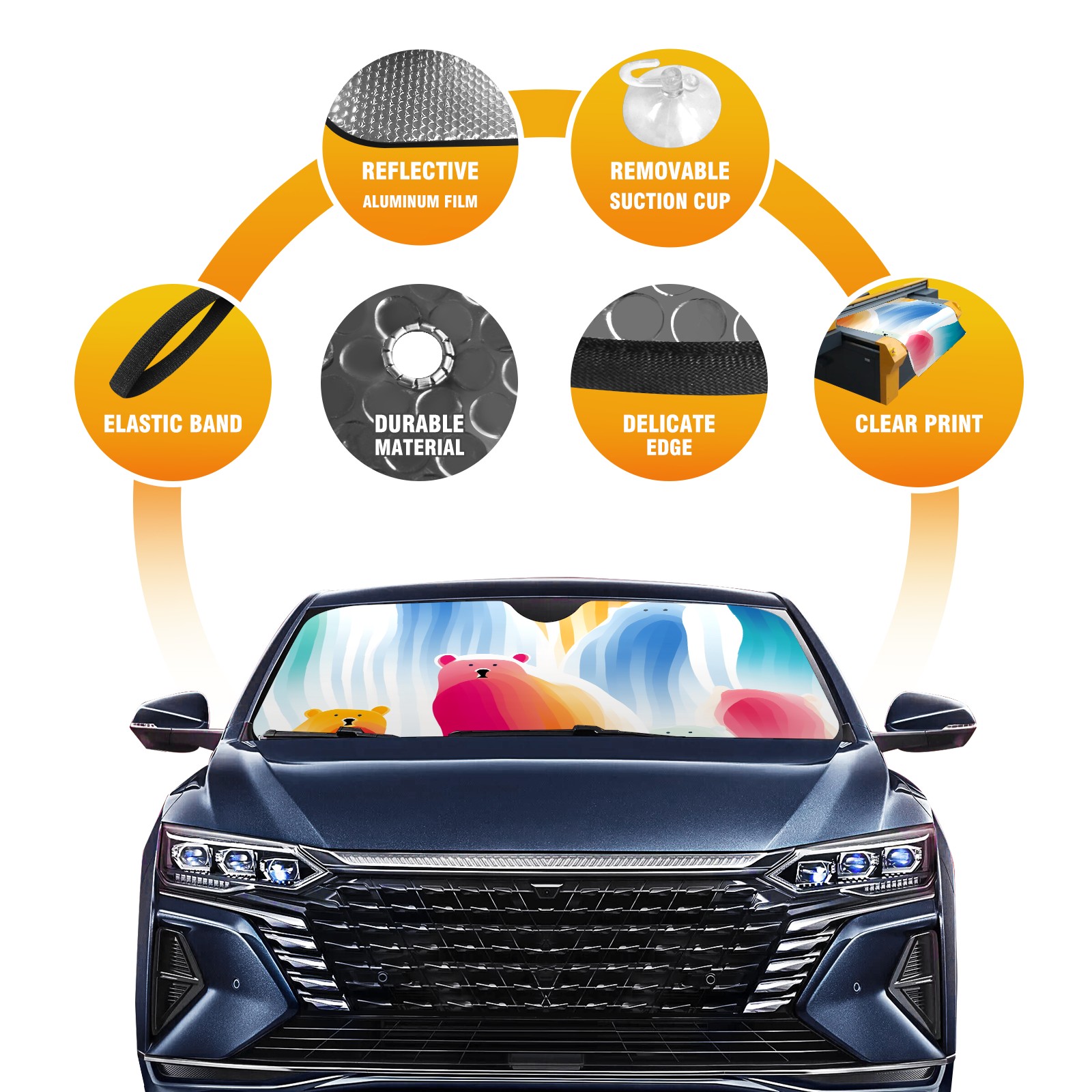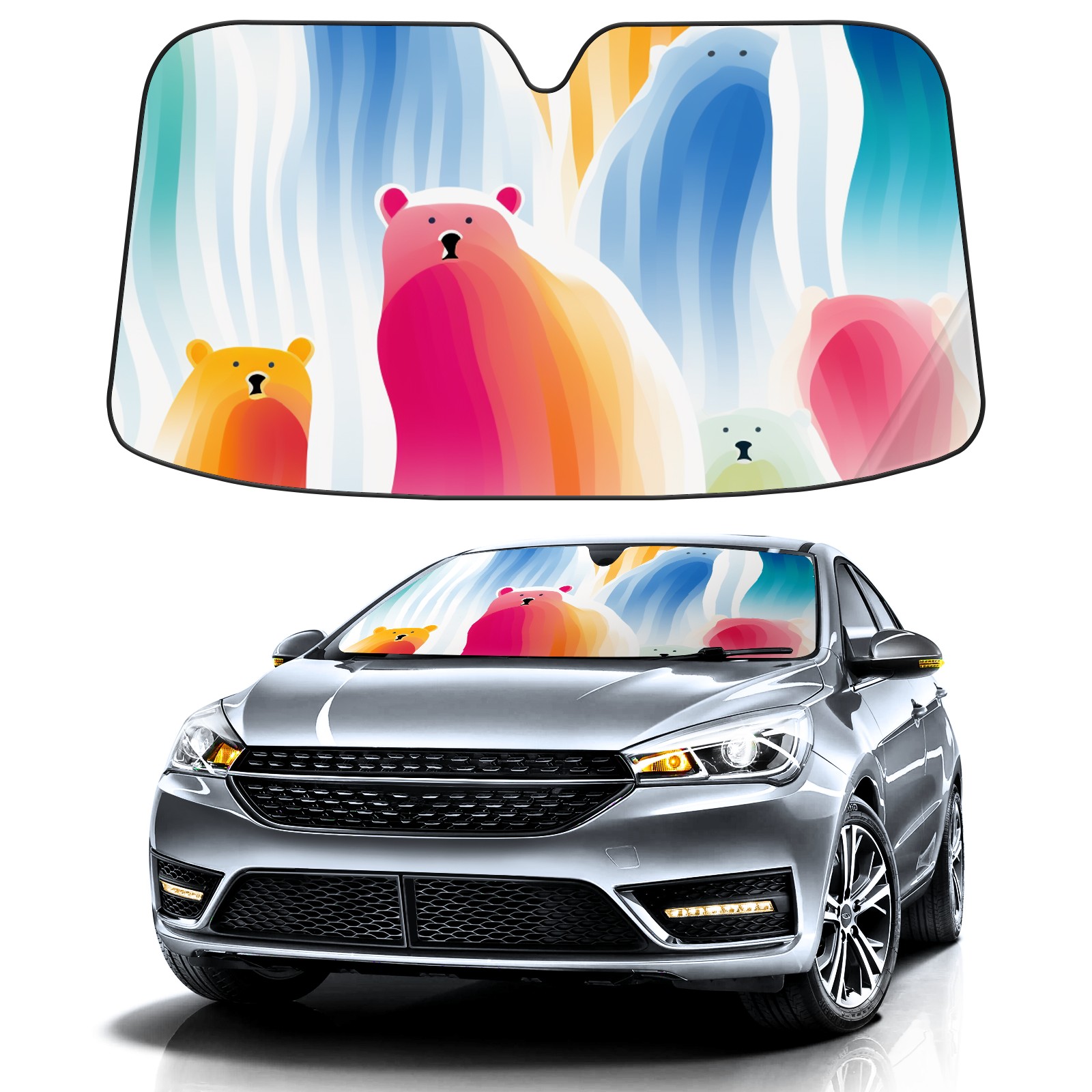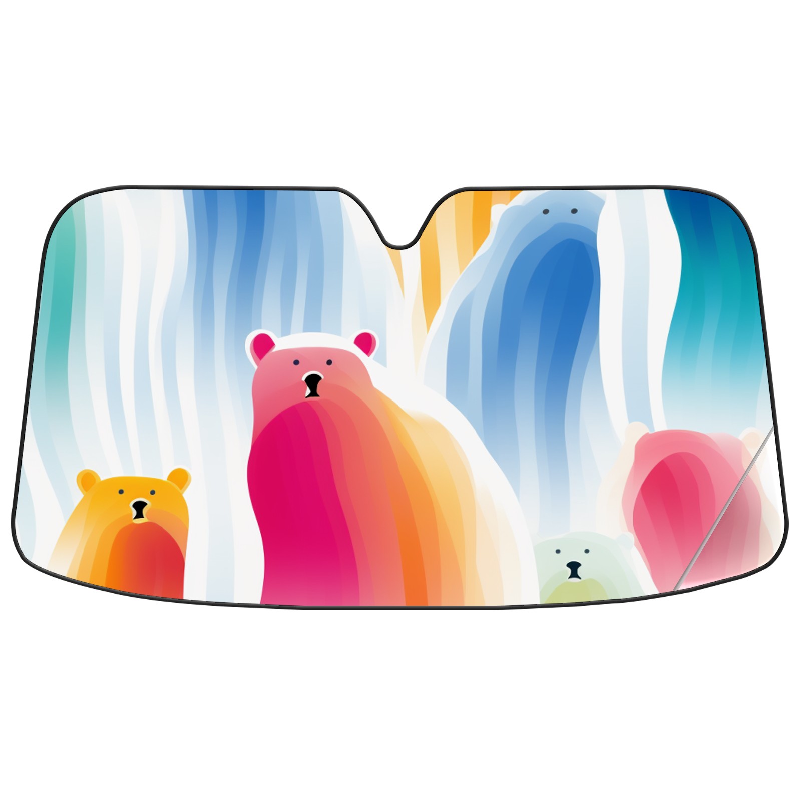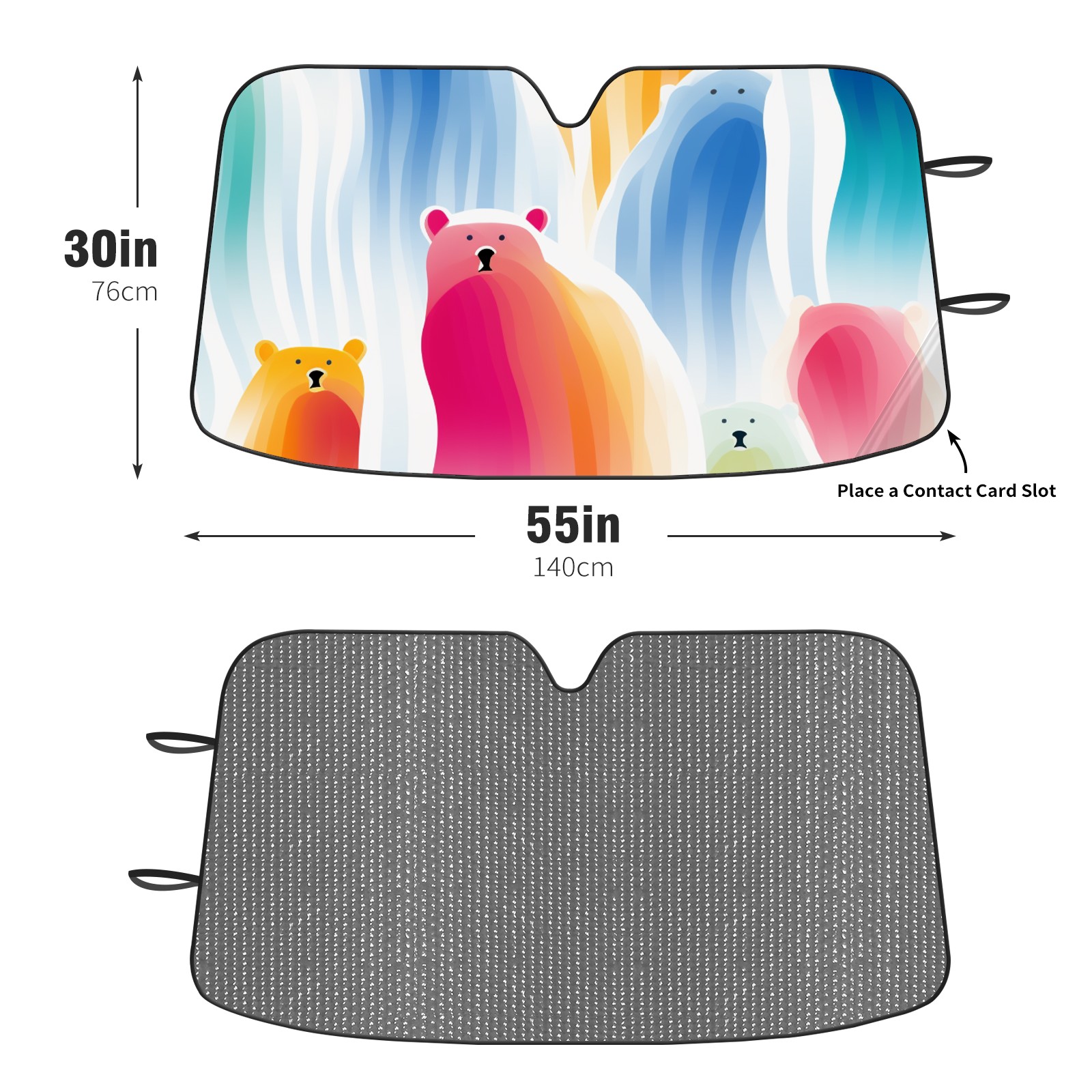 Car Windshield Sun Shade for Front Window Waving Bear 2 Foldable Vehicle Windshield Car Sun Visor Covers Automotive Window Protector Car Privacy Sun Blocker