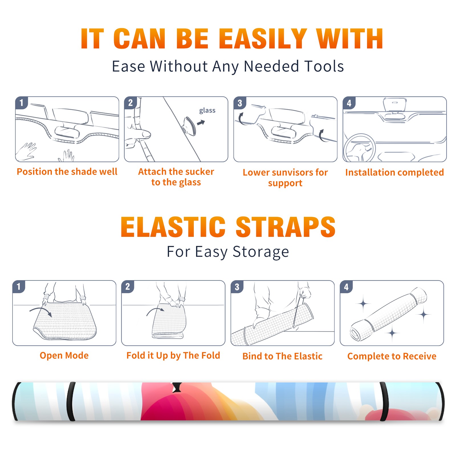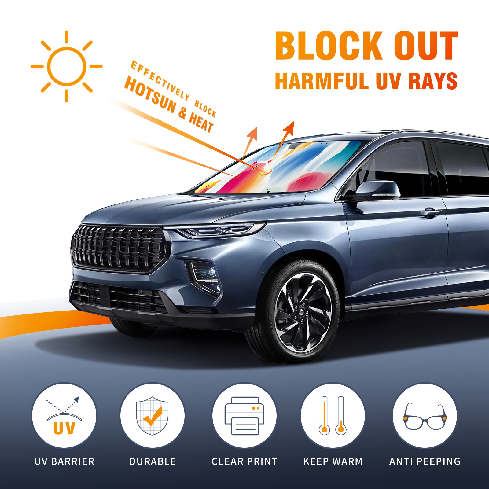 <b>ZXIVGOQFR Foldable Premium Car Windshield Sunshade is your great solution to reduce your car’s interior temperature dramatically! This is definitely a must-have item for your summer travel! </b> <br> ●<b>Size: 63"L x 33.5"W </b> <br></b> ●<b>Blocking Uv Rays & Heat Insulation<br></b> Our vehicle sunshade provides effective UV, sun, and summer heat protection .Maintains dashboards by preventing fading and cracking <br> ●<b>Easy-To-Store Folding Design Makes Storage Convenient <br></b> ZXIVGOQFR car sunshades come with removable suction cups and elastic bands that you can install easily and quickly, and the removable suction cups will not leave any marks on your windows when removed. Within seconds, windshield visor can be installed and removed. When not in use,the front windshield can be easily and effectively placed on the door pocket or the dashboard, which is beautiful and does not take up space in the car.<br> <br> <b>PUT UP A 'PROTECTIVE UMBRELLA' FOR YOUR BELOVED CAR!</b>