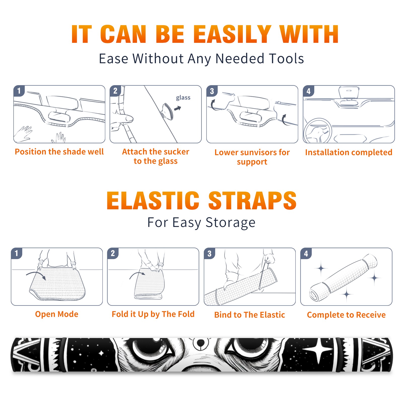 <b>ZXIVGOQFR Foldable Premium Car Windshield Sunshade is your great solution to reduce your car’s interior temperature dramatically! This is definitely a must-have item for your summer travel! </b> <br> ●<b>Size: 63"L x 33.5"W </b> <br></b> ●<b>Blocking Uv Rays & Heat Insulation<br></b> Our vehicle sunshade provides effective UV, sun, and summer heat protection .Maintains dashboards by preventing fading and cracking <br> ●<b>Easy-To-Store Folding Design Makes Storage Convenient <br></b> ZXIVGOQFR car sunshades come with removable suction cups and elastic bands that you can install easily and quickly, and the removable suction cups will not leave any marks on your windows when removed. Within seconds, windshield visor can be installed and removed. When not in use,the front windshield can be easily and effectively placed on the door pocket or the dashboard, which is beautiful and does not take up space in the car.<br> <br> <b>PUT UP A 'PROTECTIVE UMBRELLA' FOR YOUR BELOVED CAR!</b>
