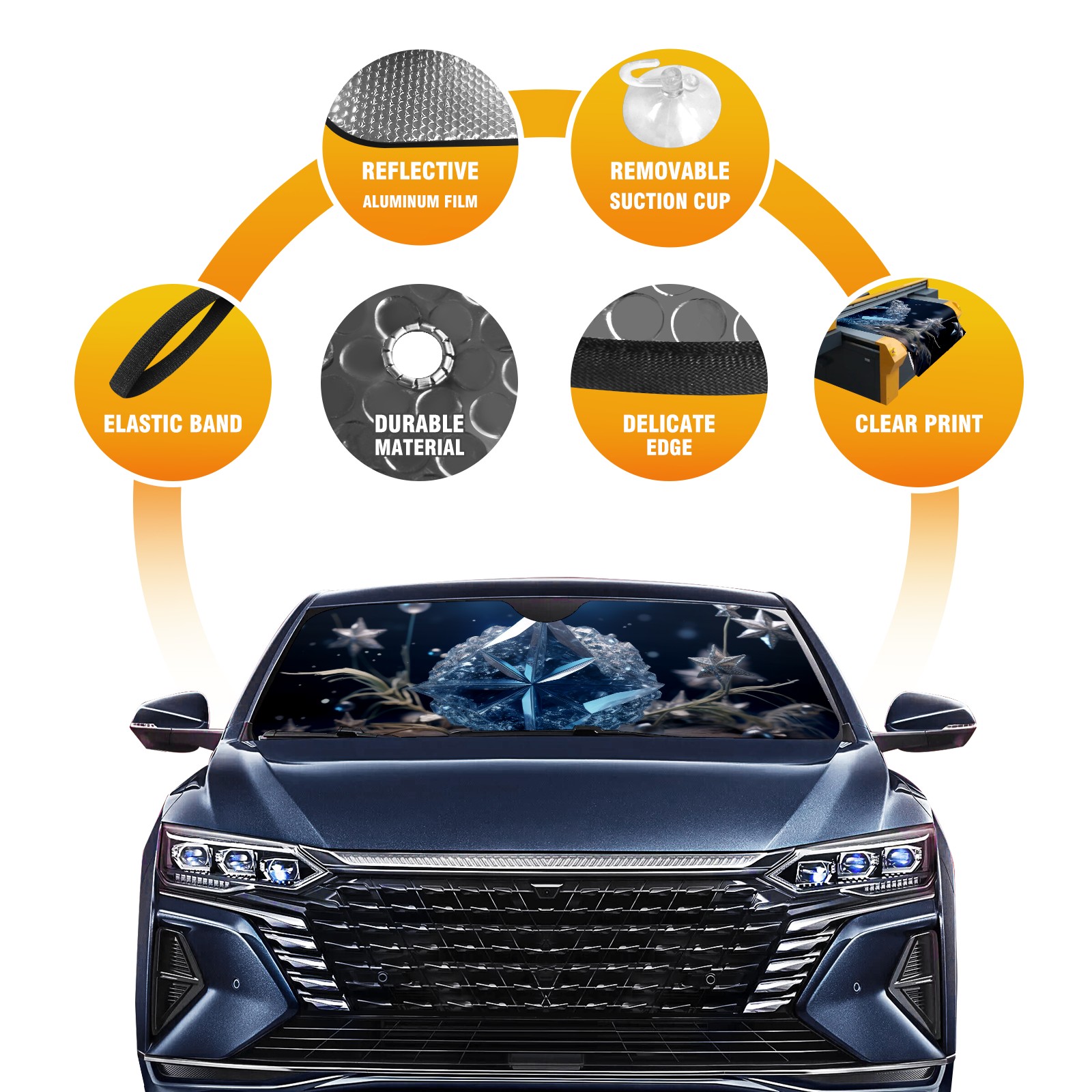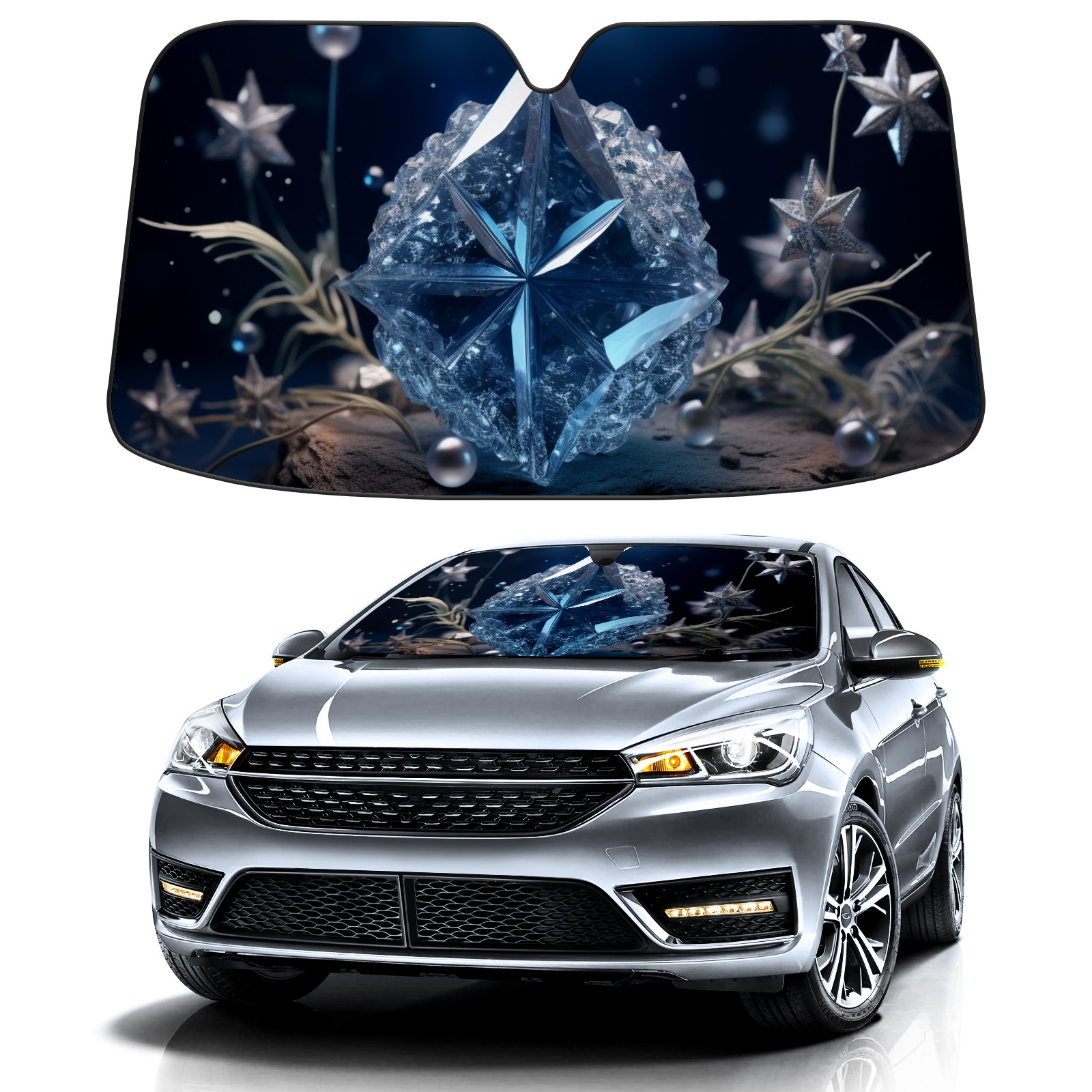 Car Windshield Sun Shade for Front Window Blue Gemstone 2 Foldable Vehicle Windshield Car Sun Visor Covers Automotive Window Protector Car Privacy Sun Blocker
