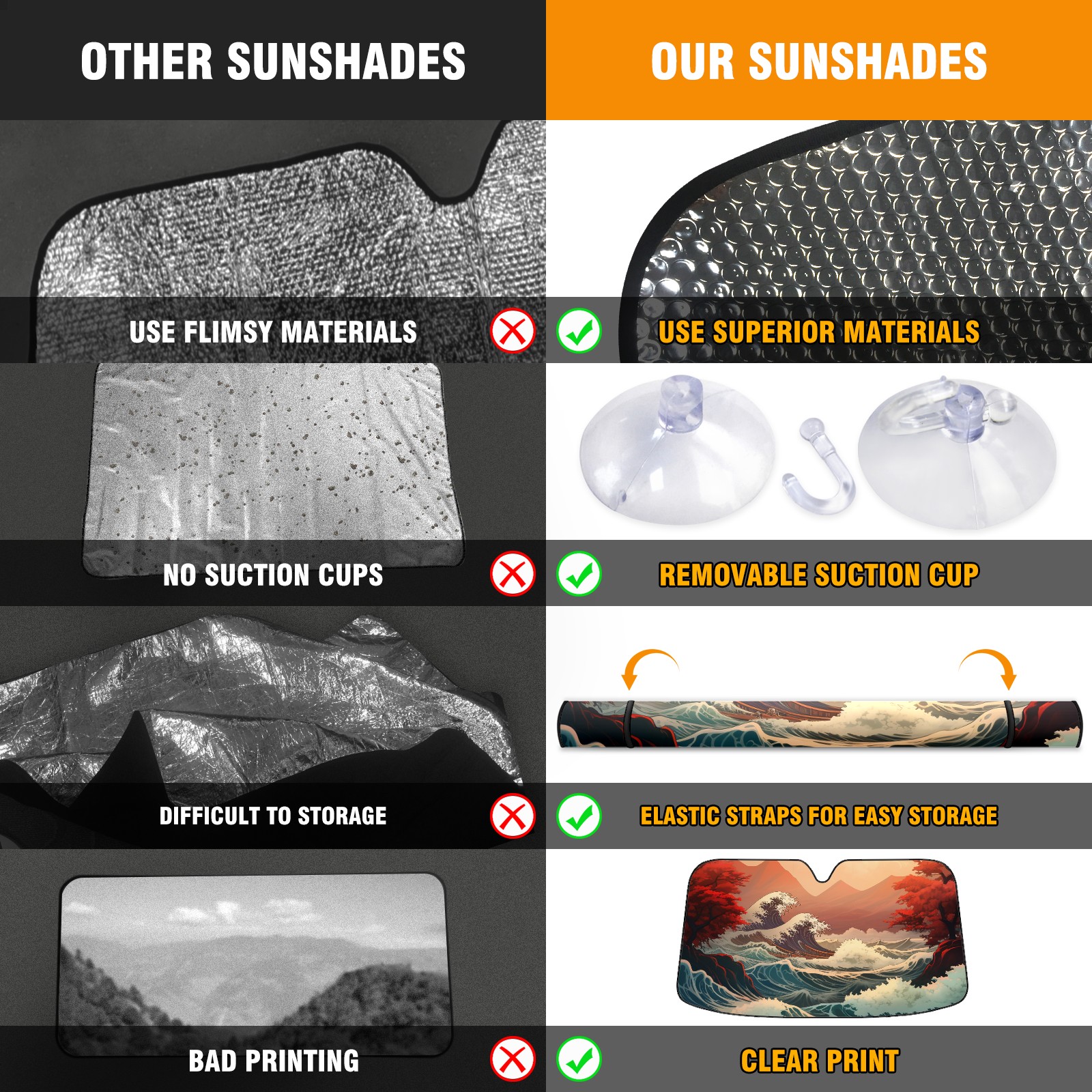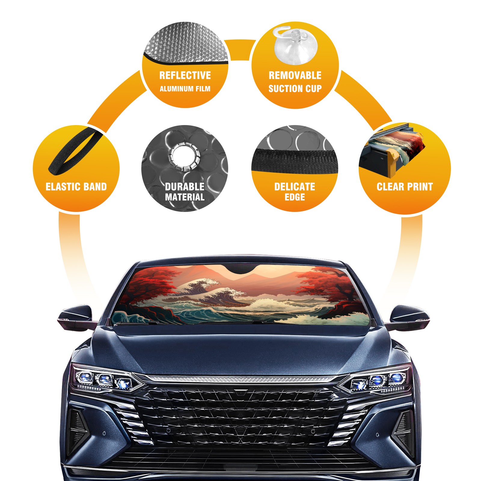 <b>ZXIVGOQFR Foldable Premium Car Windshield Sunshade is your great solution to reduce your car’s interior temperature dramatically! This is definitely a must-have item for your summer travel! </b> <br> ●<b>Size: 63"L x 33.5"W </b> <br></b> ●<b>Blocking Uv Rays & Heat Insulation<br></b> Our vehicle sunshade provides effective UV, sun, and summer heat protection .Maintains dashboards by preventing fading and cracking <br> ●<b>Easy-To-Store Folding Design Makes Storage Convenient <br></b> ZXIVGOQFR car sunshades come with removable suction cups and elastic bands that you can install easily and quickly, and the removable suction cups will not leave any marks on your windows when removed. Within seconds, windshield visor can be installed and removed. When not in use,the front windshield can be easily and effectively placed on the door pocket or the dashboard, which is beautiful and does not take up space in the car.<br> <br> <b>PUT UP A 'PROTECTIVE UMBRELLA' FOR YOUR BELOVED CAR!</b>