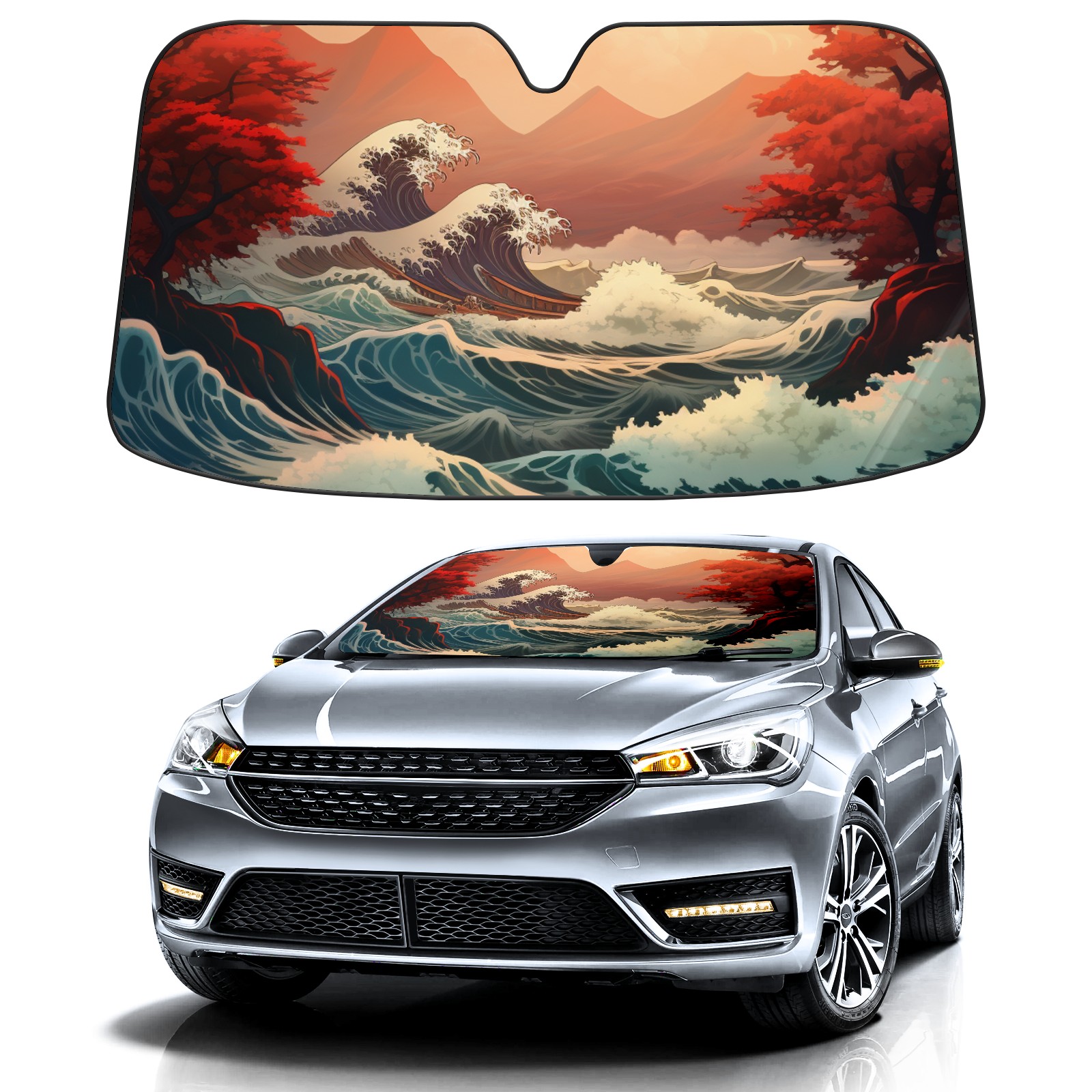 Car Windshield Sun Shade for Front Window Wave 3 Foldable Vehicle Windshield Car Sun Visor Covers Automotive Window Protector Car Privacy Sun Blocker