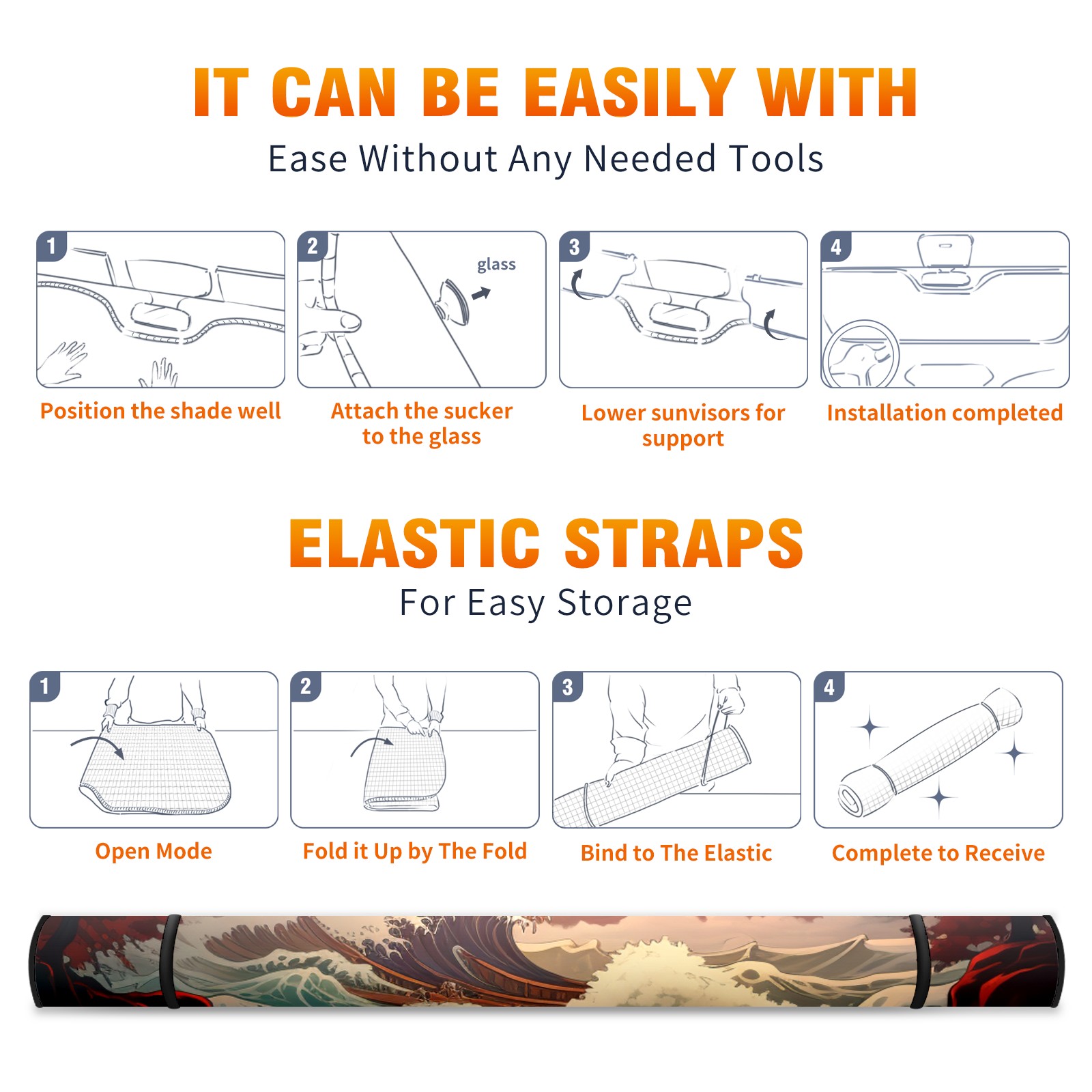 • <b>ZXIVGOQFR Foldable Premium Car Windshield Sunshade is your great solution to reduce your car’s interior temperature dramatically! This is definitely a must-have item for your summer travel! </b> <br> ●<b>Size: 63"L x 33.5"W </b> <br></b> ●<b>Blocking Uv Rays & Heat Insulation<br></b> Our vehicle sunshade provides effective UV, sun, and summer heat protection .Maintains dashboards by preventing fading and cracking <br> ●<b>Easy-To-Store Folding Design Makes Storage Convenient <br></b> ZXIVGOQFR car sunshades come with removable suction cups and elastic bands that you can install easily and quickly, and the removable suction cups will not leave any marks on your windows when removed. Within seconds, windshield visor can be installed and removed. When not in use,the front windshield can be easily and effectively placed on the door pocket or the dashboard, which is beautiful and does not take up space in the car.<br> <br> <b>PUT UP A 'PROTECTIVE UMBRELLA' FOR YOUR BELOVED CAR!</b>