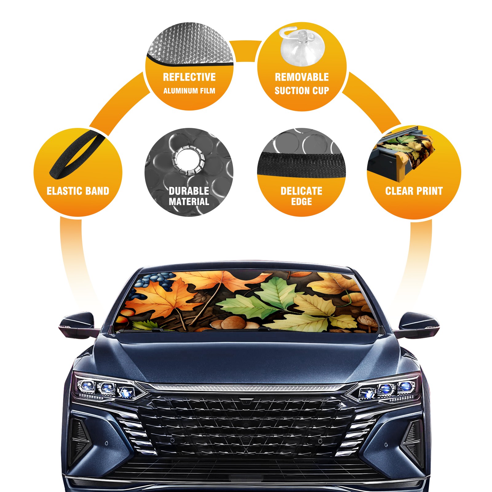 <b>ZXIVGOQFR Foldable Premium Car Windshield Sunshade is your great solution to reduce your car’s interior temperature dramatically! This is definitely a must-have item for your summer travel! </b> <br> ●<b>Size: 63"L x 33.5"W </b> <br></b> ●<b>Blocking Uv Rays & Heat Insulation<br></b> Our vehicle sunshade provides effective UV, sun, and summer heat protection .Maintains dashboards by preventing fading and cracking <br> ●<b>Easy-To-Store Folding Design Makes Storage Convenient <br></b> ZXIVGOQFR car sunshades come with removable suction cups and elastic bands that you can install easily and quickly, and the removable suction cups will not leave any marks on your windows when removed. Within seconds, windshield visor can be installed and removed. When not in use,the front windshield can be easily and effectively placed on the door pocket or the dashboard, which is beautiful and does not take up space in the car.<br> <br> <b>PUT UP A 'PROTECTIVE UMBRELLA' FOR YOUR BELOVED CAR!</b>