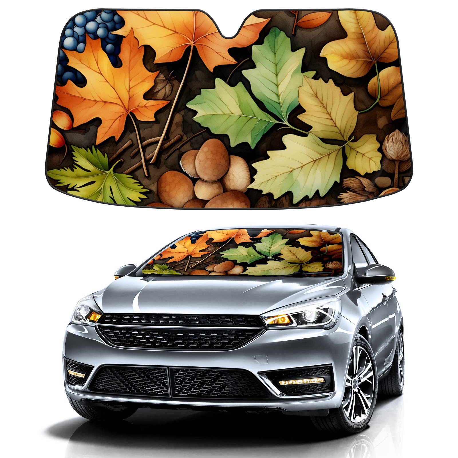 Car Windshield Sun Shade for Front Window Watercolor Leaves St Foldable Vehicle Windshield Car Sun Visor Covers Automotive Window Protector Car Privacy Sun Blocker