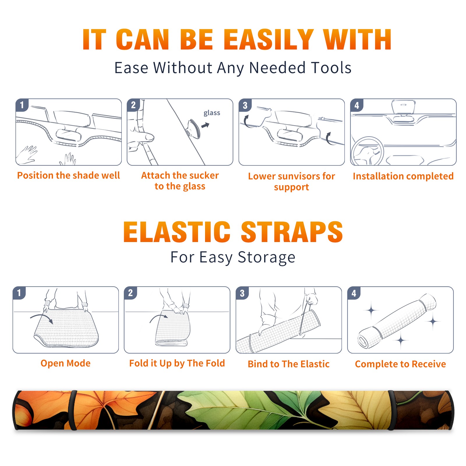 • <b>ZXIVGOQFR Foldable Premium Car Windshield Sunshade is your great solution to reduce your car’s interior temperature dramatically! This is definitely a must-have item for your summer travel! </b> <br> ●<b>Size: 63"L x 33.5"W </b> <br></b> ●<b>Blocking Uv Rays & Heat Insulation<br></b> Our vehicle sunshade provides effective UV, sun, and summer heat protection .Maintains dashboards by preventing fading and cracking <br> ●<b>Easy-To-Store Folding Design Makes Storage Convenient <br></b> ZXIVGOQFR car sunshades come with removable suction cups and elastic bands that you can install easily and quickly, and the removable suction cups will not leave any marks on your windows when removed. Within seconds, windshield visor can be installed and removed. When not in use,the front windshield can be easily and effectively placed on the door pocket or the dashboard, which is beautiful and does not take up space in the car.<br> <br> <b>PUT UP A 'PROTECTIVE UMBRELLA' FOR YOUR BELOVED CAR!</b>