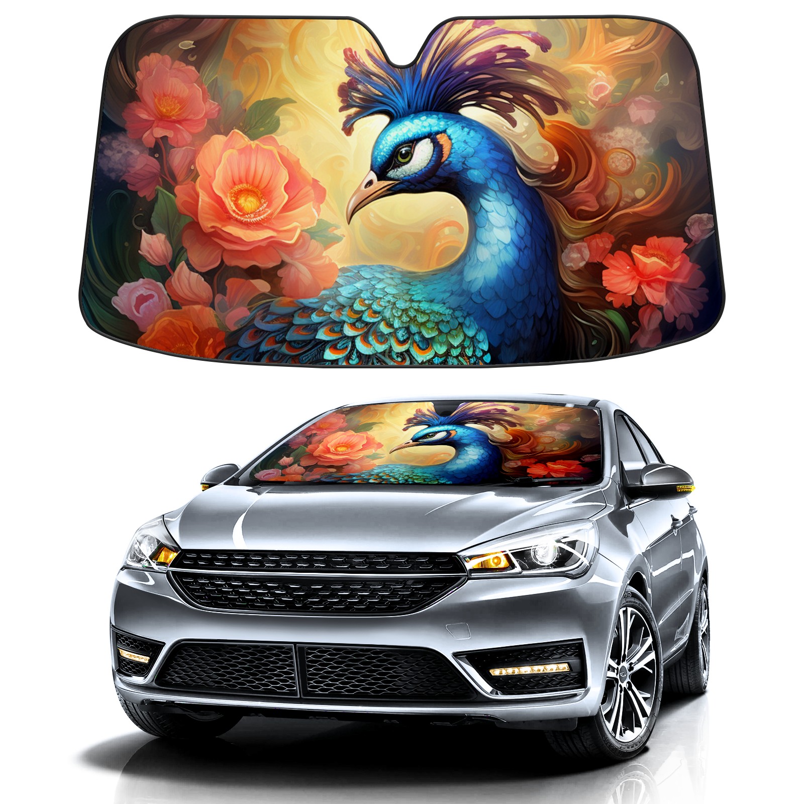 Car Windshield Sun Shade for Front Window Peacocks Foldable Vehicle Windshield Car Sun Visor Covers Automotive Window Protector Car Privacy Sun Blocker