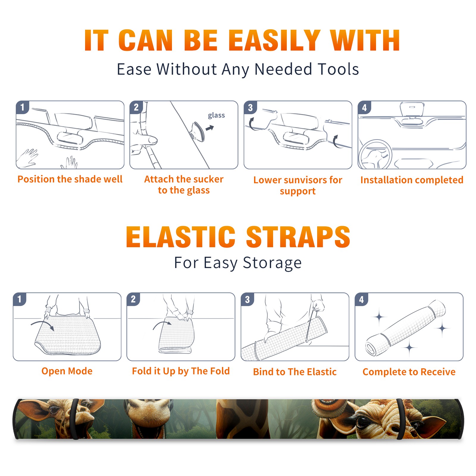 Car Windshield Sun Shade for Front Window Giraffe Foldable Vehicle Windshield Car Sun Visor Covers Automotive Window Protector Car Privacy Sun Blocker