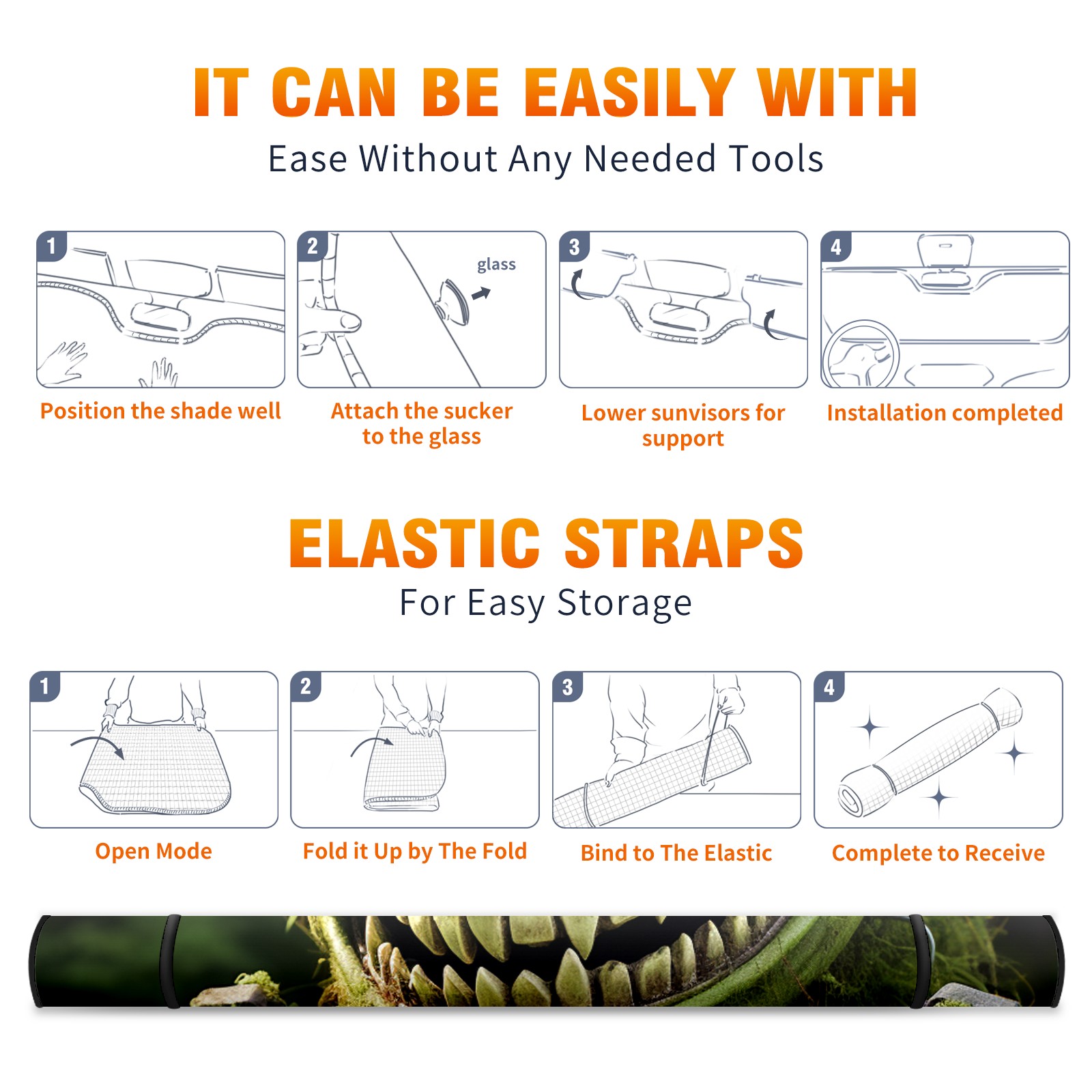 <b>ZXIVGOQFR Foldable Premium Car Windshield Sunshade is your great solution to reduce your car’s interior temperature dramatically! This is definitely a must-have item for your summer travel! </b> <br> ●<b>Size: 63"L x 33.5"W </b> <br></b> ●<b>Blocking Uv Rays & Heat Insulation<br></b> Our vehicle sunshade provides effective UV, sun, and summer heat protection .Maintains dashboards by preventing fading and cracking <br> ●<b>Easy-To-Store Folding Design Makes Storage Convenient <br></b> ZXIVGOQFR car sunshades come with removable suction cups and elastic bands that you can install easily and quickly, and the removable suction cups will not leave any marks on your windows when removed. Within seconds, windshield visor can be installed and removed. When not in use,the front windshield can be easily and effectively placed on the door pocket or the dashboard, which is beautiful and does not take up space in the car.<br> <br> <b>PUT UP A 'PROTECTIVE UMBRELLA' FOR YOUR BELOVED CAR!</b>