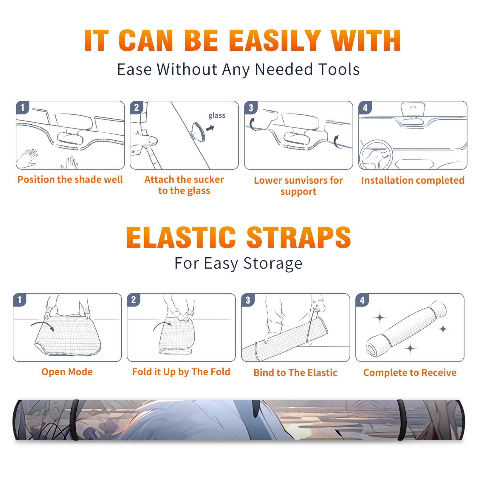 • <b>ZXIVGOQFR Foldable Premium Car Windshield Sunshade is your great solution to reduce your car’s interior temperature dramatically! This is definitely a must-have item for your summer travel! </b> <br> ●<b>Size: 63"L x 33.5"W </b> <br></b> ●<b>Blocking Uv Rays & Heat Insulation<br></b> Our vehicle sunshade provides effective UV, sun, and summer heat protection .Maintains dashboards by preventing fading and cracking <br> ●<b>Easy-To-Store Folding Design Makes Storage Convenient <br></b> ZXIVGOQFR car sunshades come with removable suction cups and elastic bands that you can install easily and quickly, and the removable suction cups will not leave any marks on your windows when removed. Within seconds, windshield visor can be installed and removed. When not in use,the front windshield can be easily and effectively placed on the door pocket or the dashboard, which is beautiful and does not take up space in the car.<br> <br> <b>PUT UP A 'PROTECTIVE UMBRELLA' FOR YOUR BELOVED CAR!</b>
