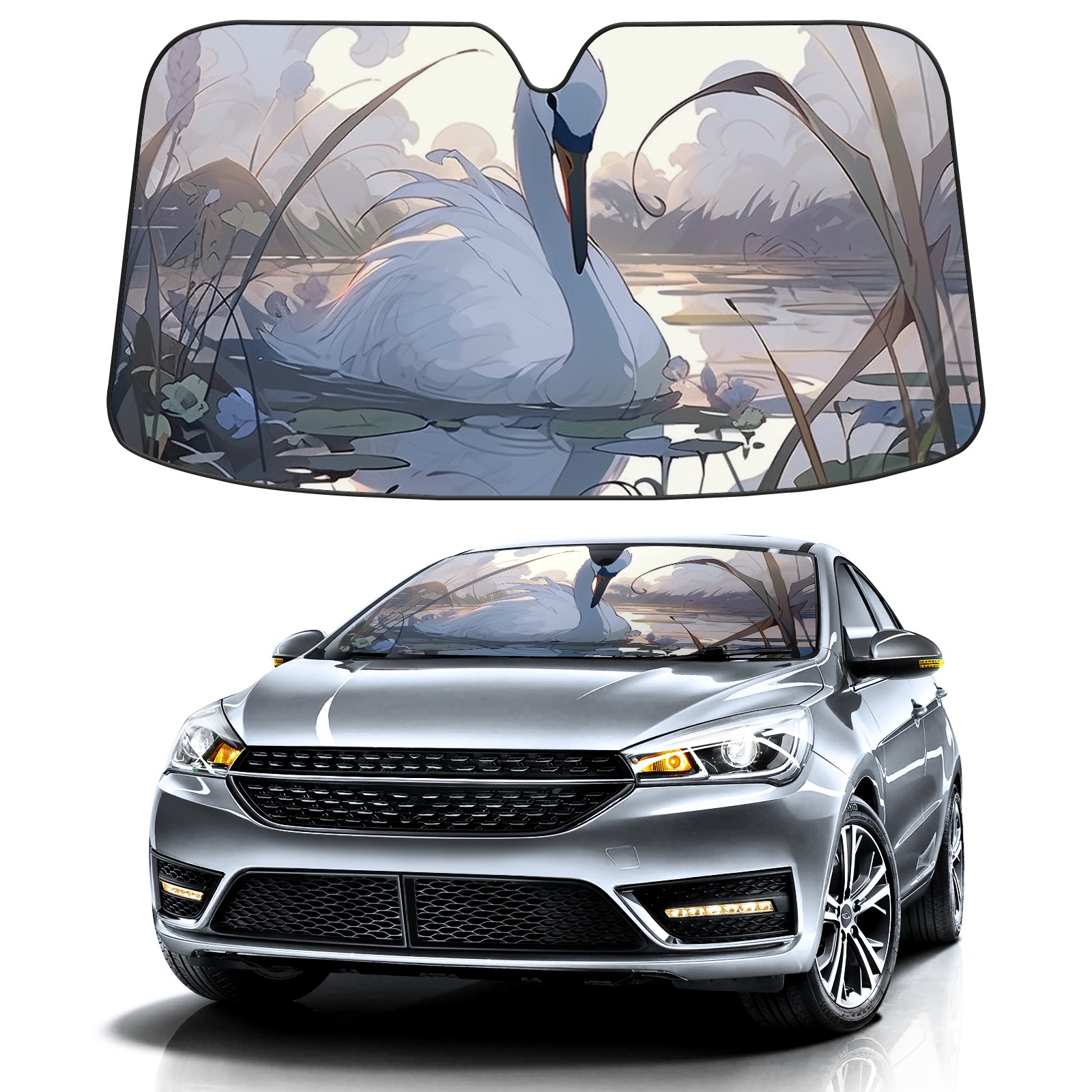 Car Windshield Sun Shade for Front Window Swan Foldable Vehicle Windshield Car Sun Visor Covers Automotive Window Protector Car Privacy Sun Blocker