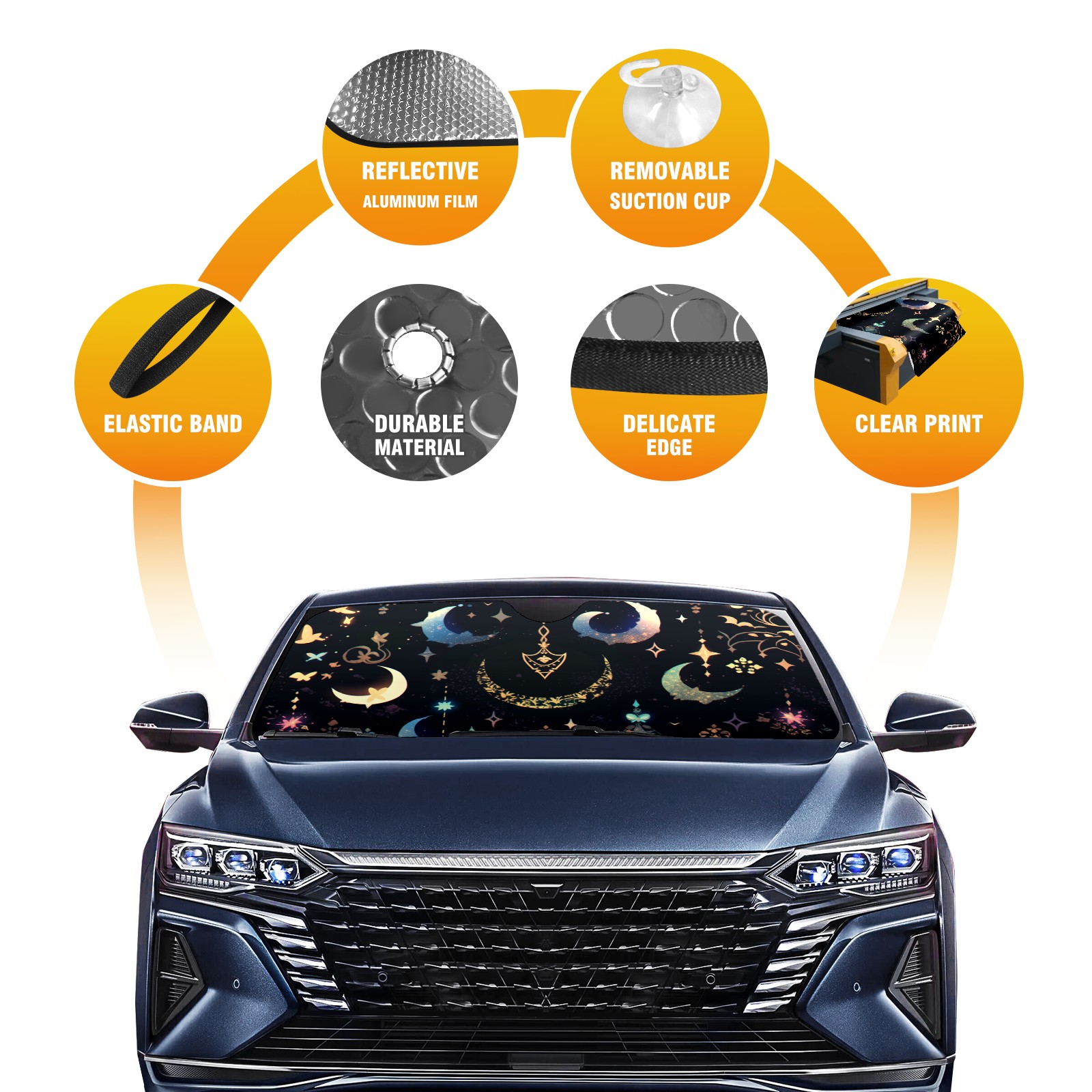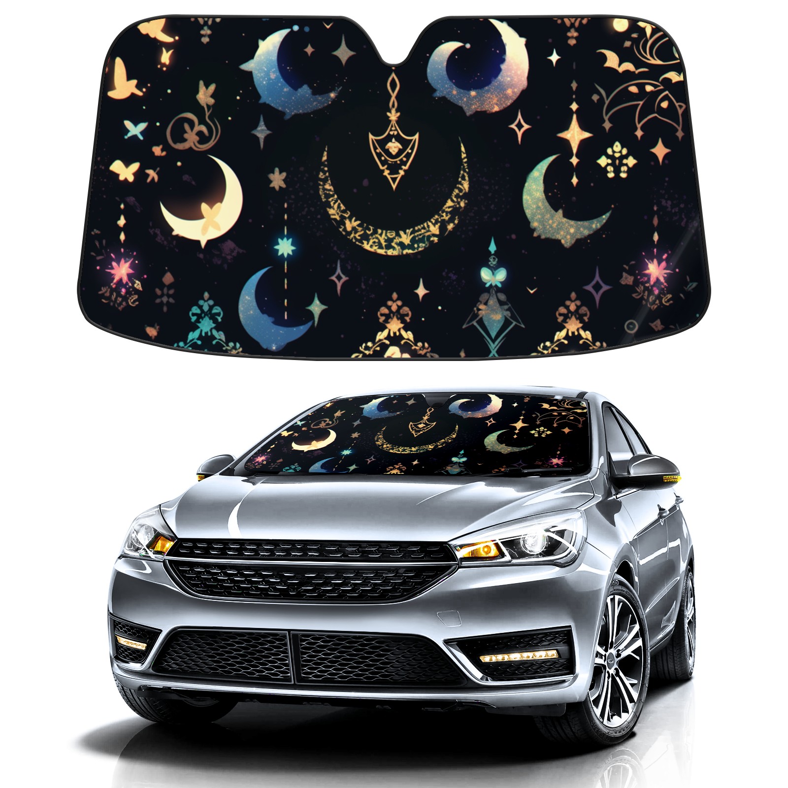 Car Windshield Sun Shade for Front Window Night Sky Pattern Foldable Vehicle Windshield Car Sun Visor Covers Automotive Window Protector Car Privacy Sun Blocker