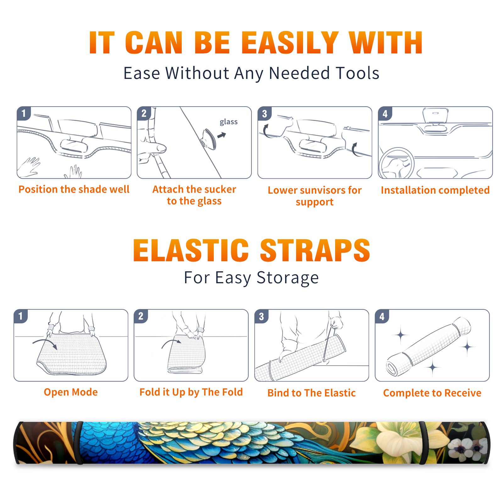 <b>ZXIVGOQFR Foldable Premium Car Windshield Sunshade is your great solution to reduce your car’s interior temperature dramatically! This is definitely a must-have item for your summer travel! </b> <br> ●<b>Size: 63"L x 33.5"W </b> <br></b> ●<b>Blocking Uv Rays & Heat Insulation<br></b> Our vehicle sunshade provides effective UV, sun, and summer heat protection .Maintains dashboards by preventing fading and cracking <br> ●<b>Easy-To-Store Folding Design Makes Storage Convenient <br></b> ZXIVGOQFR car sunshades come with removable suction cups and elastic bands that you can install easily and quickly, and the removable suction cups will not leave any marks on your windows when removed. Within seconds, windshield visor can be installed and removed. When not in use,the front windshield can be easily and effectively placed on the door pocket or the dashboard, which is beautiful and does not take up space in the car.<br> <br> <b>PUT UP A 'PROTECTIVE UMBRELLA' FOR YOUR BELOVED CAR!</b>