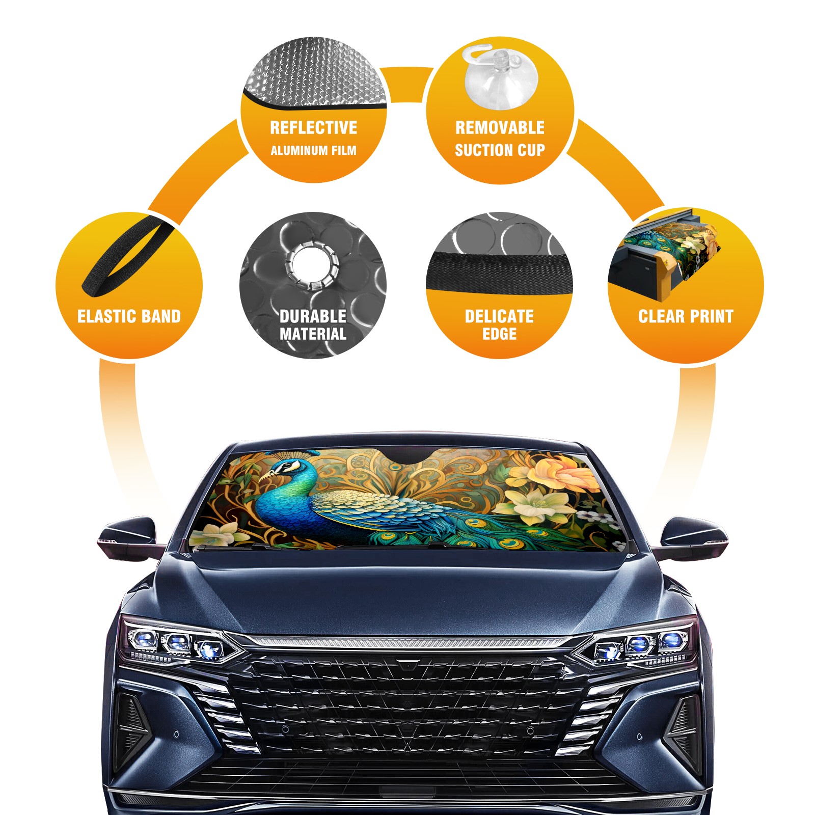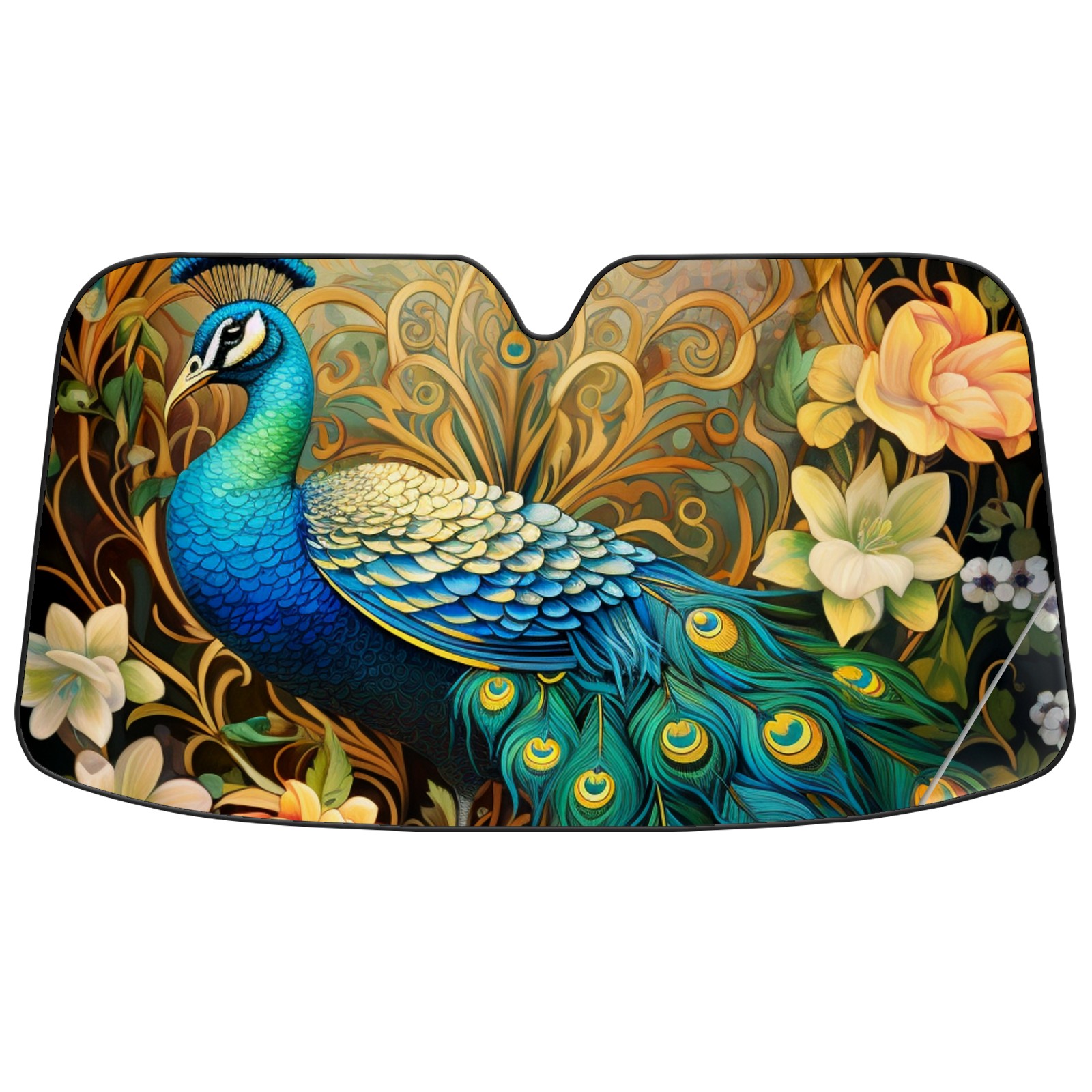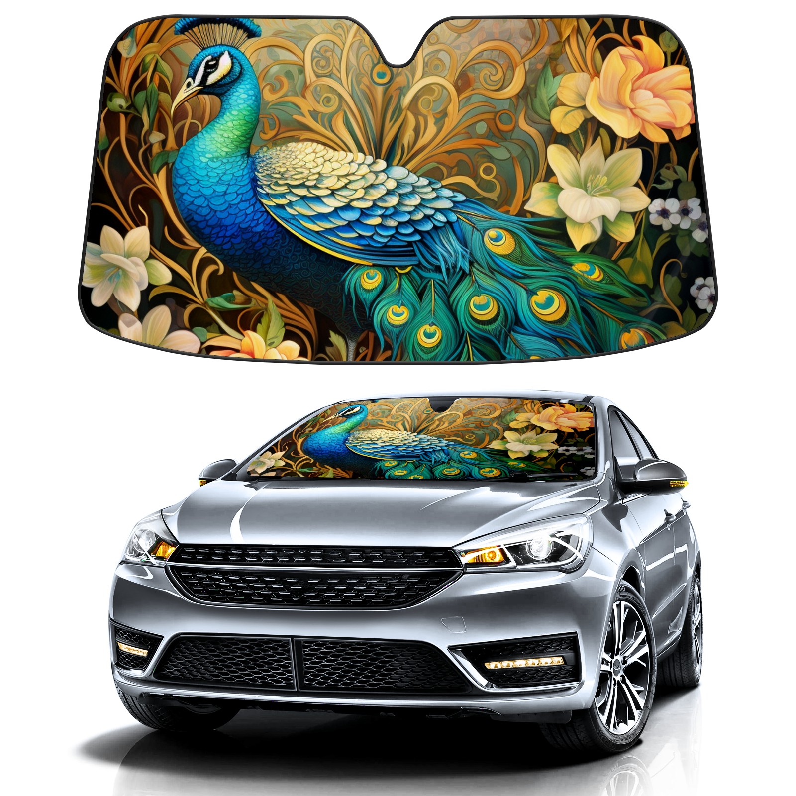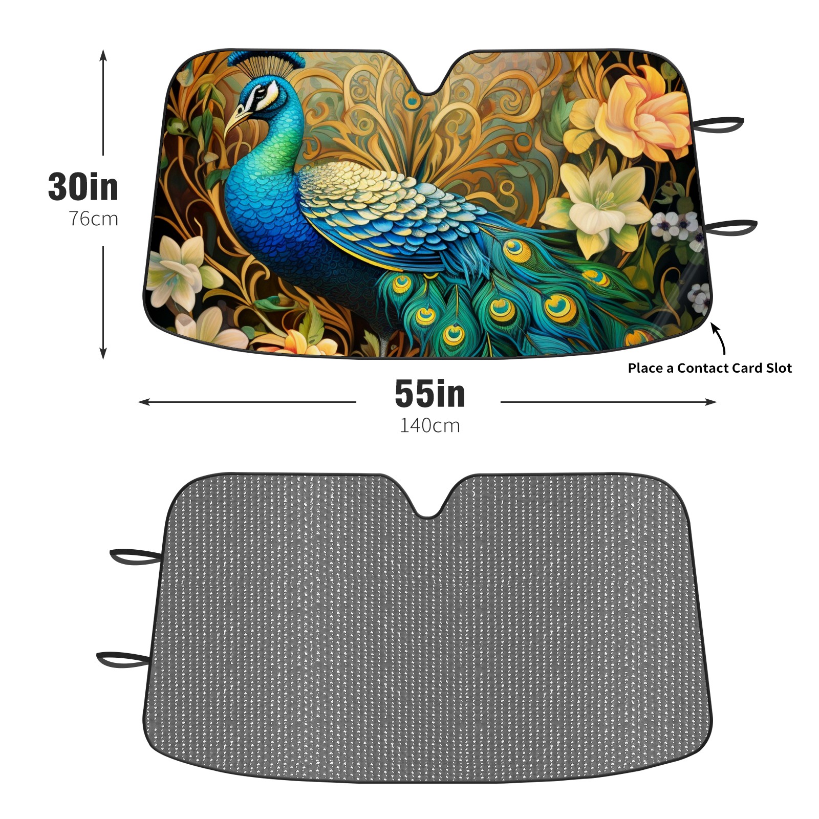 Car Windshield Sun Shade for Front Window Peacock Foldable Vehicle Windshield Car Sun Visor Covers Automotive Window Protector Car Privacy Sun Blocker