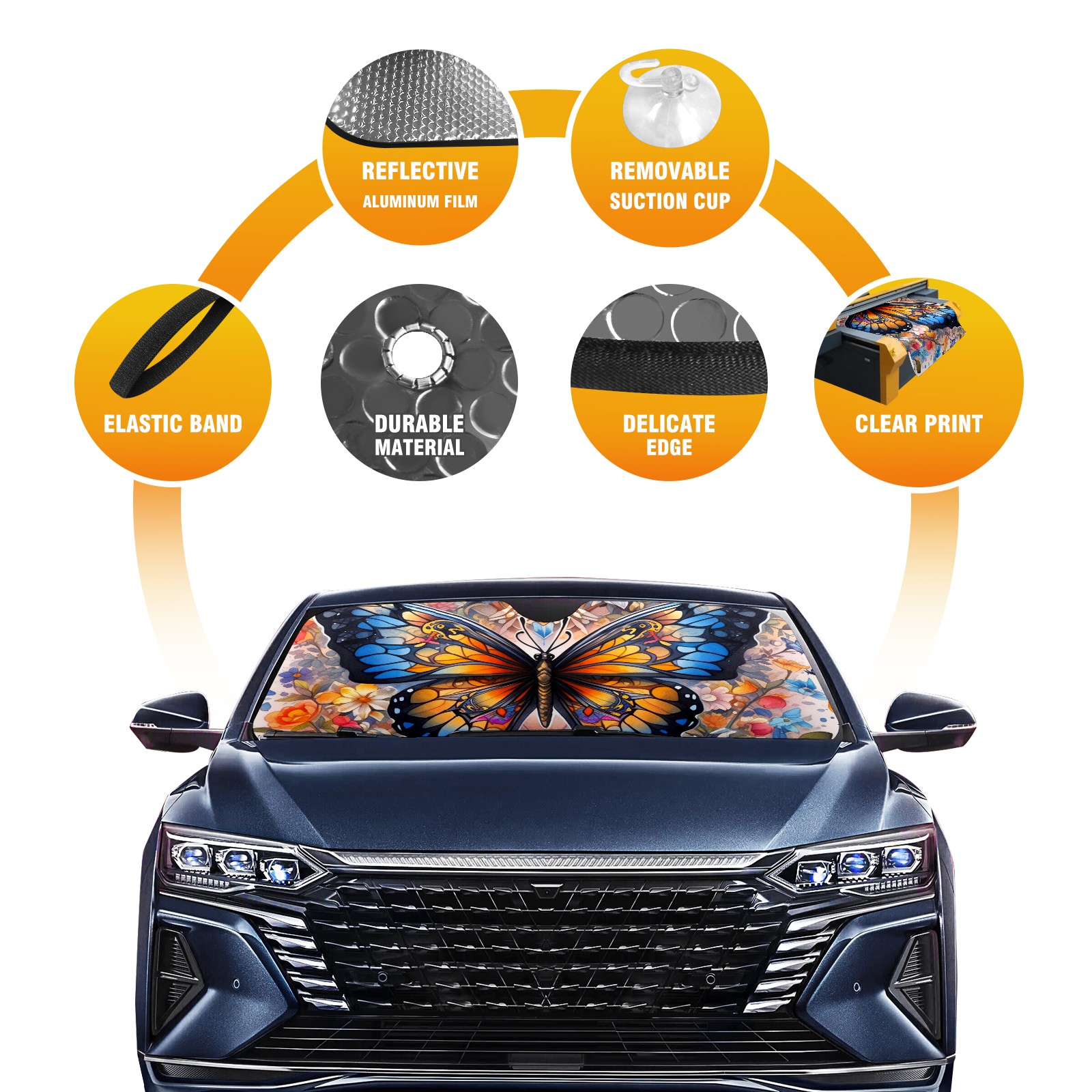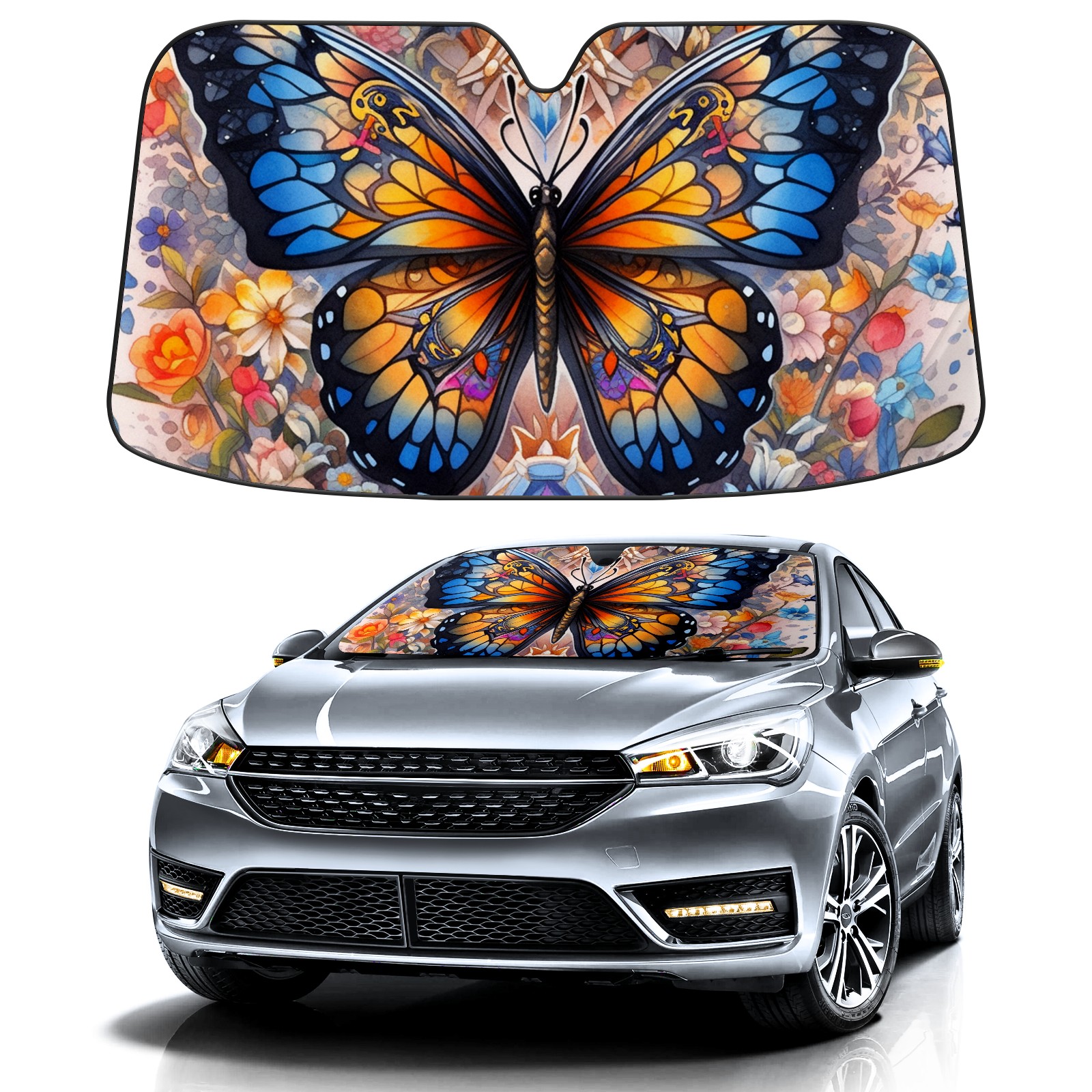 Car Windshield Sun Shade for Front Window Butterflies Foldable Vehicle Windshield Car Sun Visor Covers Automotive Window Protector Car Privacy Sun Blocker