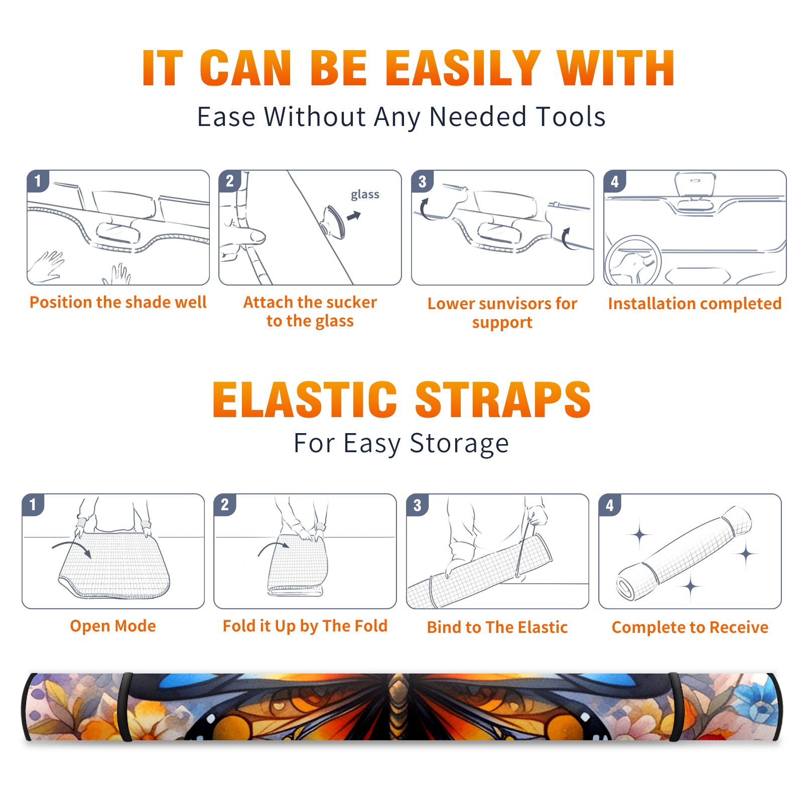 <b>ZXIVGOQFR Foldable Premium Car Windshield Sunshade is your great solution to reduce your car’s interior temperature dramatically! This is definitely a must-have item for your summer travel! </b> <br> ●<b>Size: 63"L x 33.5"W </b> <br></b> ●<b>Blocking Uv Rays & Heat Insulation<br></b> Our vehicle sunshade provides effective UV, sun, and summer heat protection .Maintains dashboards by preventing fading and cracking <br> ●<b>Easy-To-Store Folding Design Makes Storage Convenient <br></b> ZXIVGOQFR car sunshades come with removable suction cups and elastic bands that you can install easily and quickly, and the removable suction cups will not leave any marks on your windows when removed. Within seconds, windshield visor can be installed and removed. When not in use,the front windshield can be easily and effectively placed on the door pocket or the dashboard, which is beautiful and does not take up space in the car.<br> <br> <b>PUT UP A 'PROTECTIVE UMBRELLA' FOR YOUR BELOVED CAR!</b>