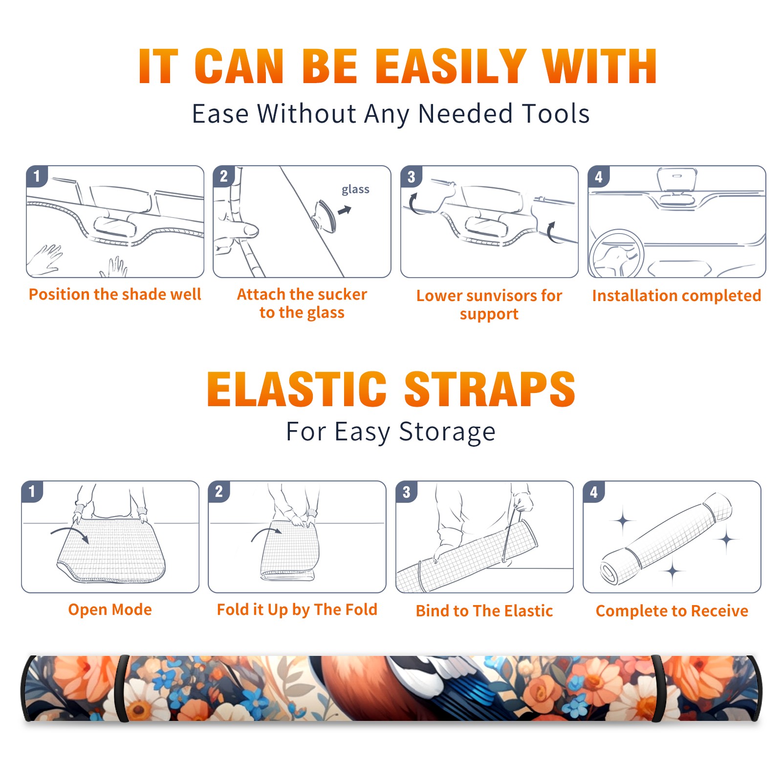 • <b>ZXIVGOQFR Foldable Premium Car Windshield Sunshade is your great solution to reduce your car’s interior temperature dramatically! This is definitely a must-have item for your summer travel! </b> <br> ●<b>Size: 63"L x 33.5"W </b> <br></b> ●<b>Blocking Uv Rays & Heat Insulation<br></b> Our vehicle sunshade provides effective UV, sun, and summer heat protection .Maintains dashboards by preventing fading and cracking <br> ●<b>Easy-To-Store Folding Design Makes Storage Convenient <br></b> ZXIVGOQFR car sunshades come with removable suction cups and elastic bands that you can install easily and quickly, and the removable suction cups will not leave any marks on your windows when removed. Within seconds, windshield visor can be installed and removed. When not in use,the front windshield can be easily and effectively placed on the door pocket or the dashboard, which is beautiful and does not take up space in the car.<br> <br> <b>PUT UP A 'PROTECTIVE UMBRELLA' FOR YOUR BELOVED CAR!</b>