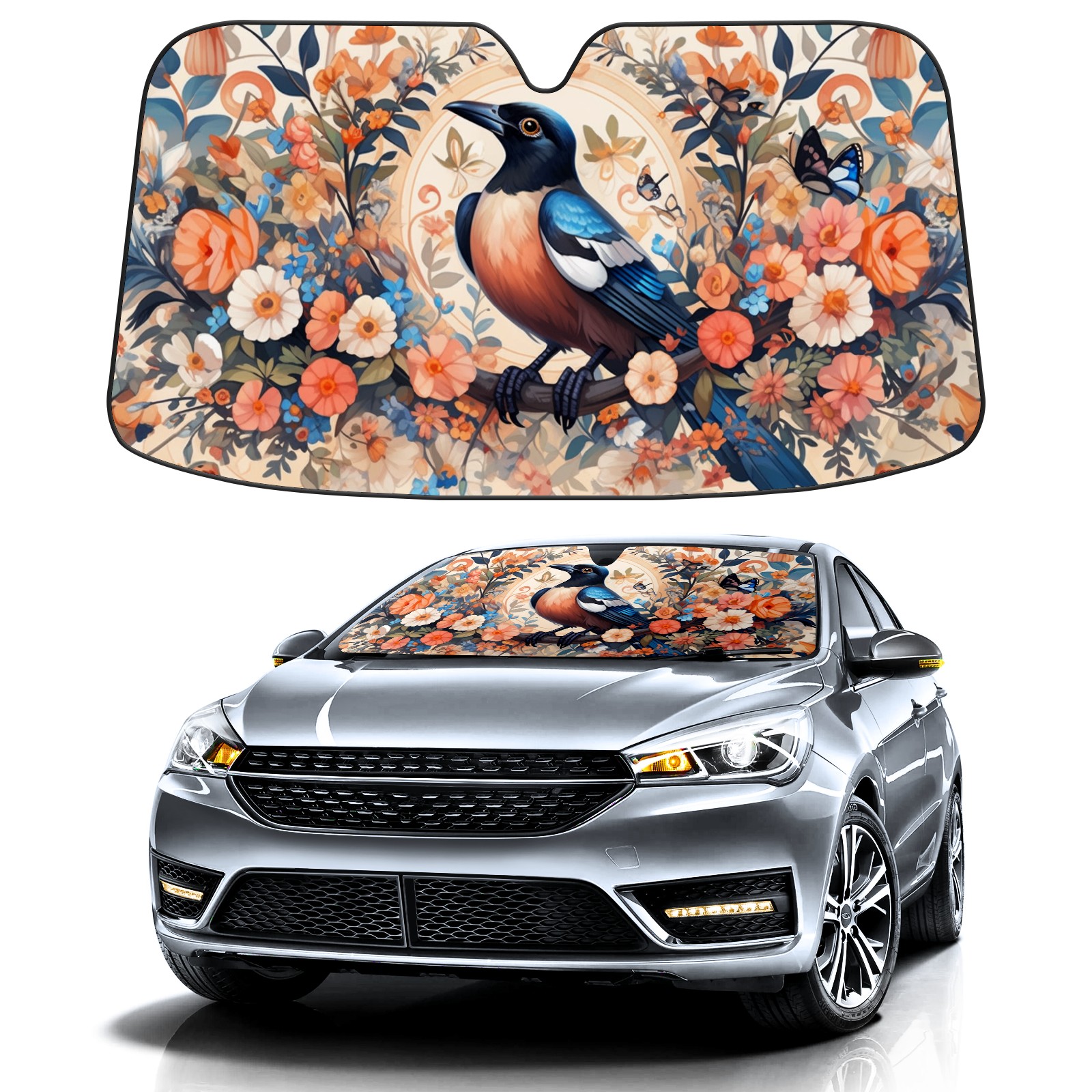Car Windshield Sun Shade for Front Window Magpie Foldable Vehicle Windshield Car Sun Visor Covers Automotive Window Protector Car Privacy Sun Blocker