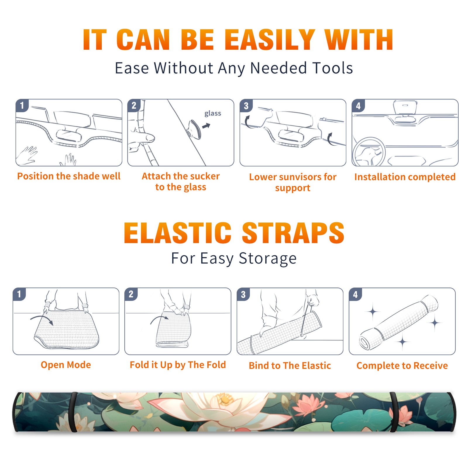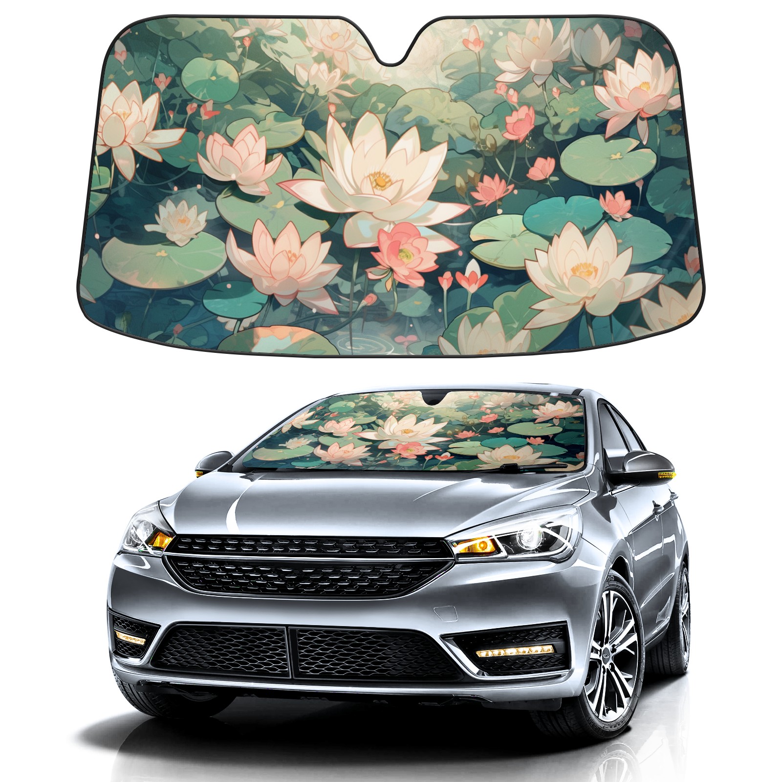 Car Windshield Sun Shade for Front Window Lotus Foldable Vehicle Windshield Car Sun Visor Covers Automotive Window Protector Car Privacy Sun Blocker
