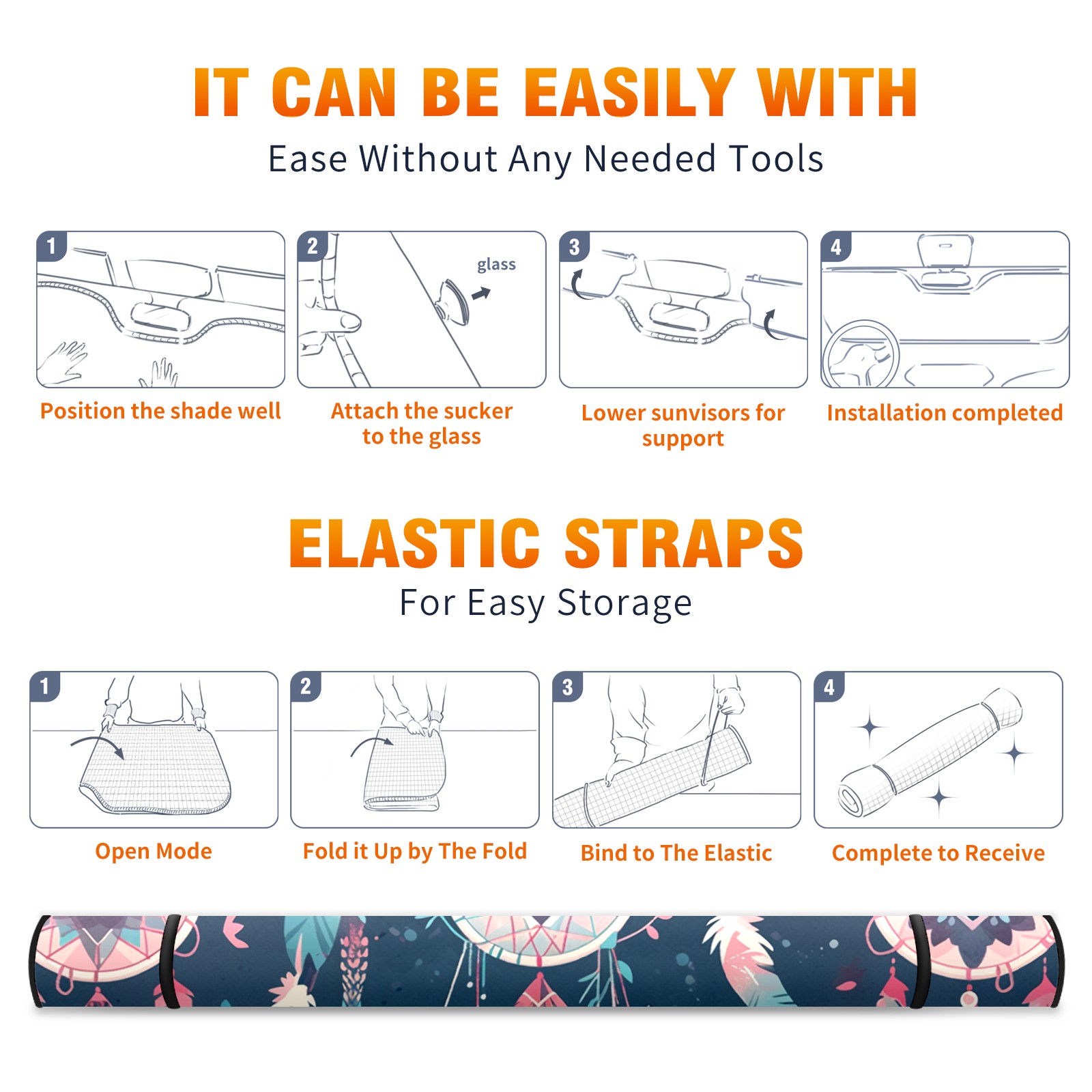 • <b>ZXIVGOQFR Foldable Premium Car Windshield Sunshade is your great solution to reduce your car’s interior temperature dramatically! This is definitely a must-have item for your summer travel! </b> <br> ●<b>Size: 63"L x 33.5"W </b> <br></b> ●<b>Blocking Uv Rays & Heat Insulation<br></b> Our vehicle sunshade provides effective UV, sun, and summer heat protection .Maintains dashboards by preventing fading and cracking <br> ●<b>Easy-To-Store Folding Design Makes Storage Convenient <br></b> ZXIVGOQFR car sunshades come with removable suction cups and elastic bands that you can install easily and quickly, and the removable suction cups will not leave any marks on your windows when removed. Within seconds, windshield visor can be installed and removed. When not in use,the front windshield can be easily and effectively placed on the door pocket or the dashboard, which is beautiful and does not take up space in the car.<br> <br> <b>PUT UP A 'PROTECTIVE UMBRELLA' FOR YOUR BELOVED CAR!</b>