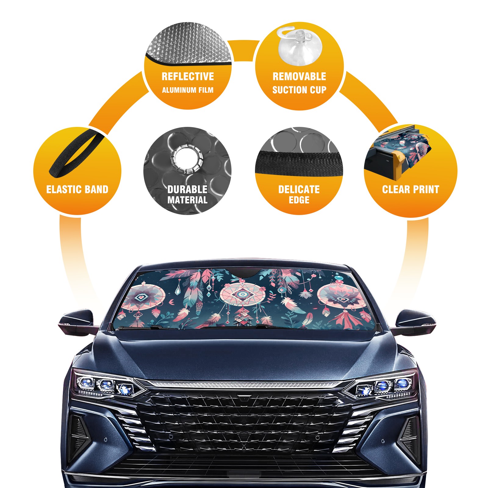 Car Windshield Sun Shade for Front Window Printing Foldable Vehicle Windshield Car Sun Visor Covers Automotive Window Protector Car Privacy Sun Blocker