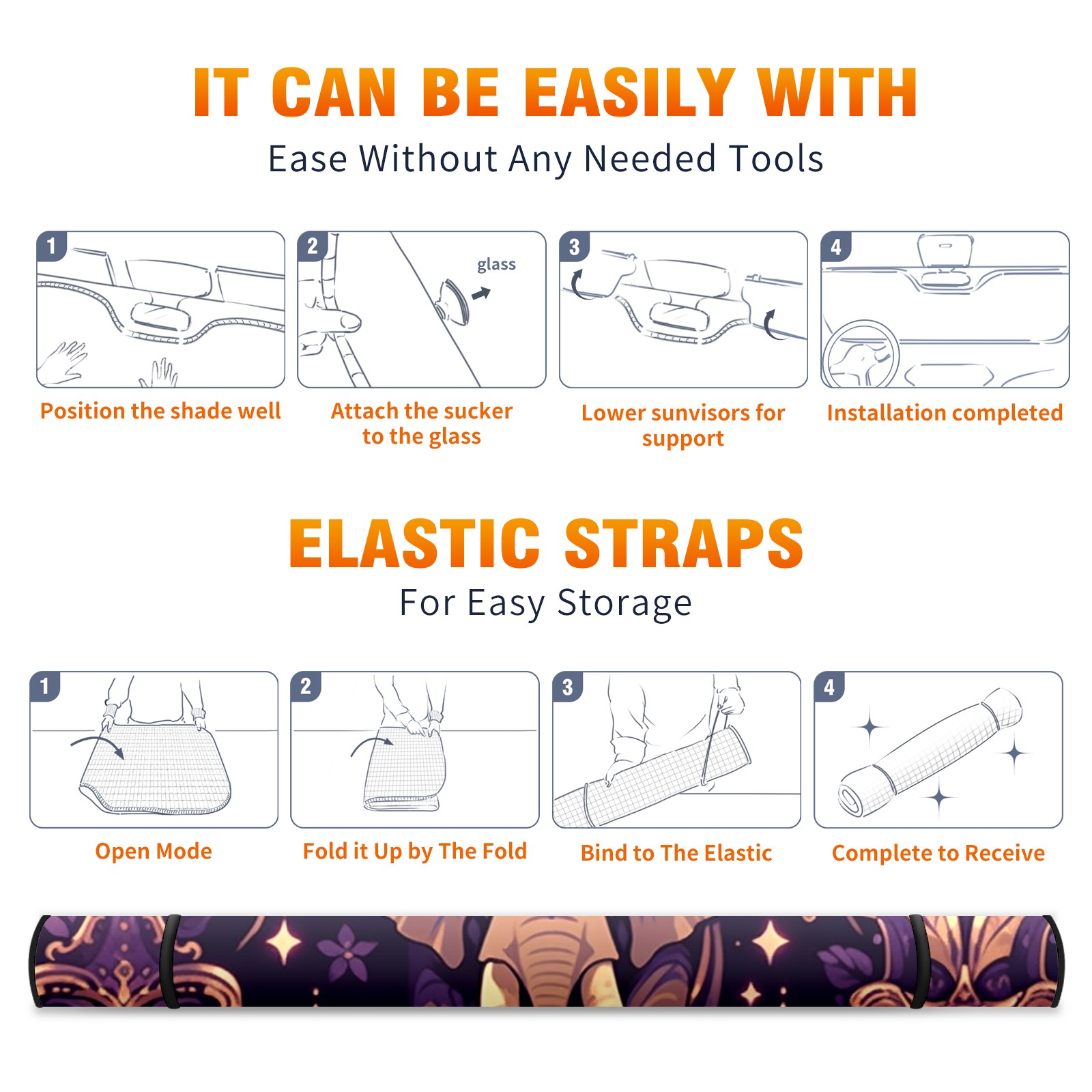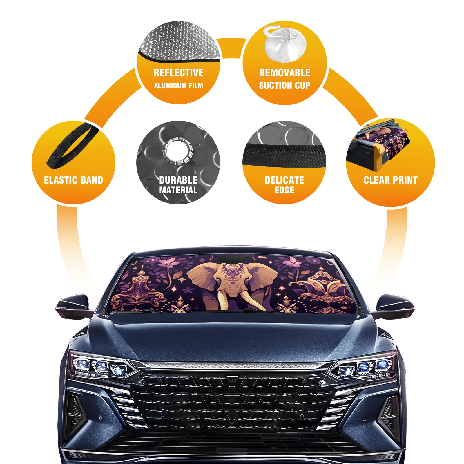 Car Windshield Sun Shade for Front Window Elephant Foldable Vehicle Windshield Car Sun Visor Covers Automotive Window Protector Car Privacy Sun Blocker