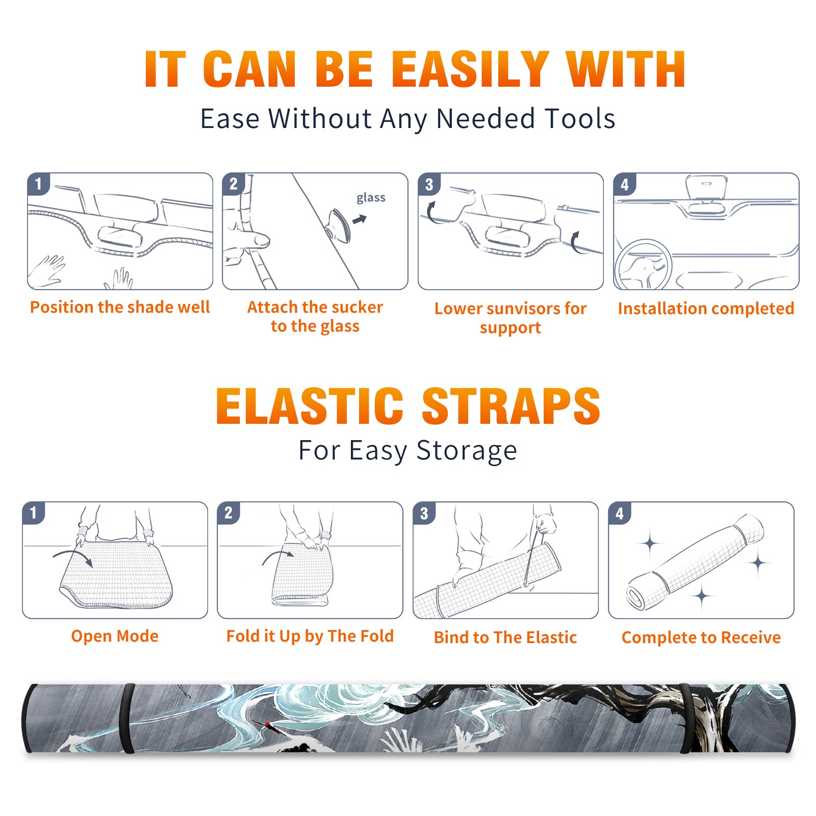• <b>ZXIVGOQFR Foldable Premium Car Windshield Sunshade is your great solution to reduce your car’s interior temperature dramatically! This is definitely a must-have item for your summer travel! </b> <br> ●<b>Size: 63"L x 33.5"W </b> <br></b> ●<b>Blocking Uv Rays & Heat Insulation<br></b> Our vehicle sunshade provides effective UV, sun, and summer heat protection .Maintains dashboards by preventing fading and cracking <br> ●<b>Easy-To-Store Folding Design Makes Storage Convenient <br></b> ZXIVGOQFR car sunshades come with removable suction cups and elastic bands that you can install easily and quickly, and the removable suction cups will not leave any marks on your windows when removed. Within seconds, windshield visor can be installed and removed. When not in use,the front windshield can be easily and effectively placed on the door pocket or the dashboard, which is beautiful and does not take up space in the car.<br> <br> <b>PUT UP A 'PROTECTIVE UMBRELLA' FOR YOUR BELOVED CAR!</b>