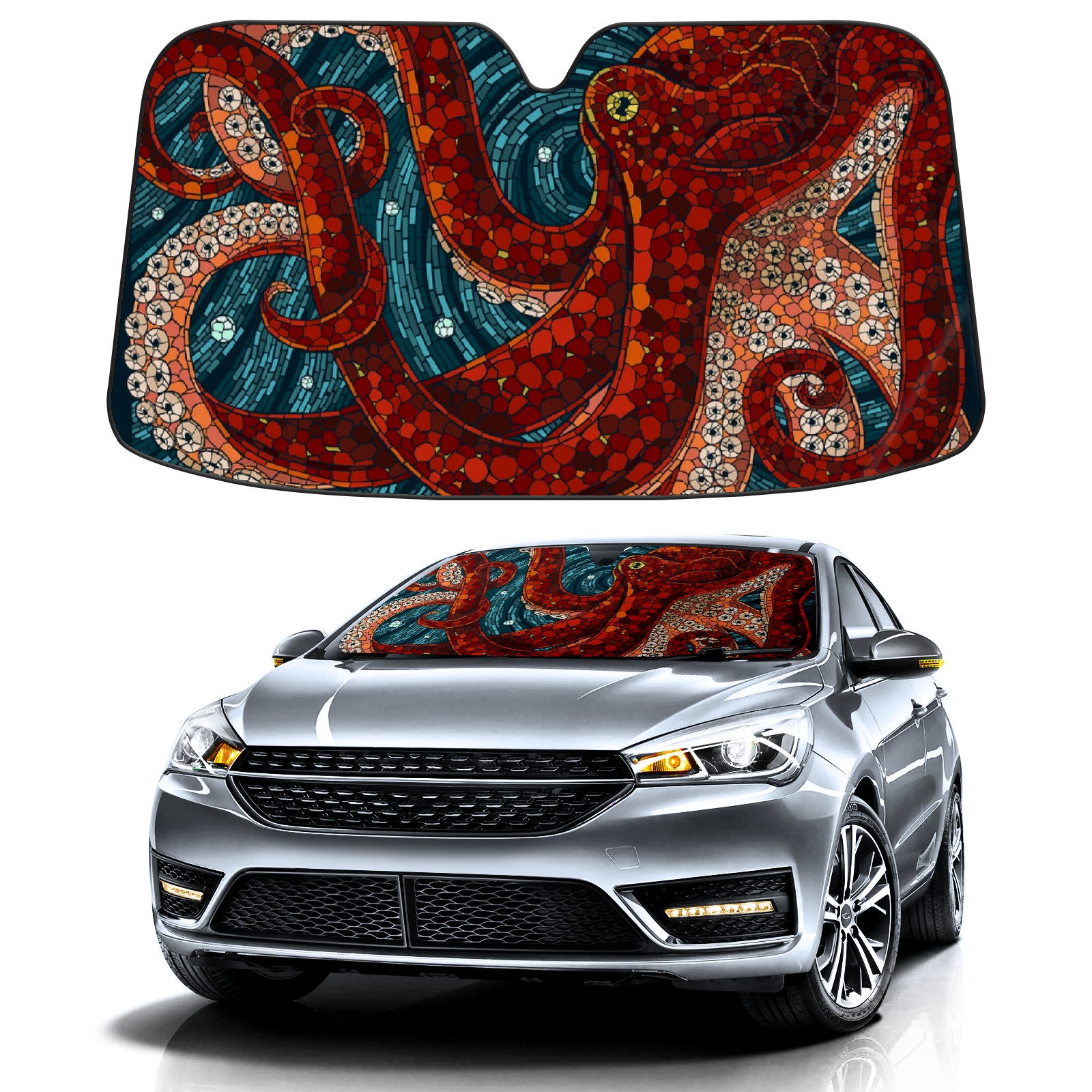 Car Windshield Sun Shade for Front Window Octopuses Foldable Vehicle Windshield Car Sun Visor Covers Automotive Window Protector Car Privacy Sun Blocker
